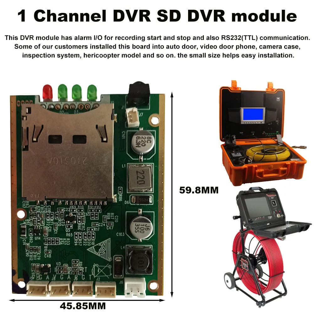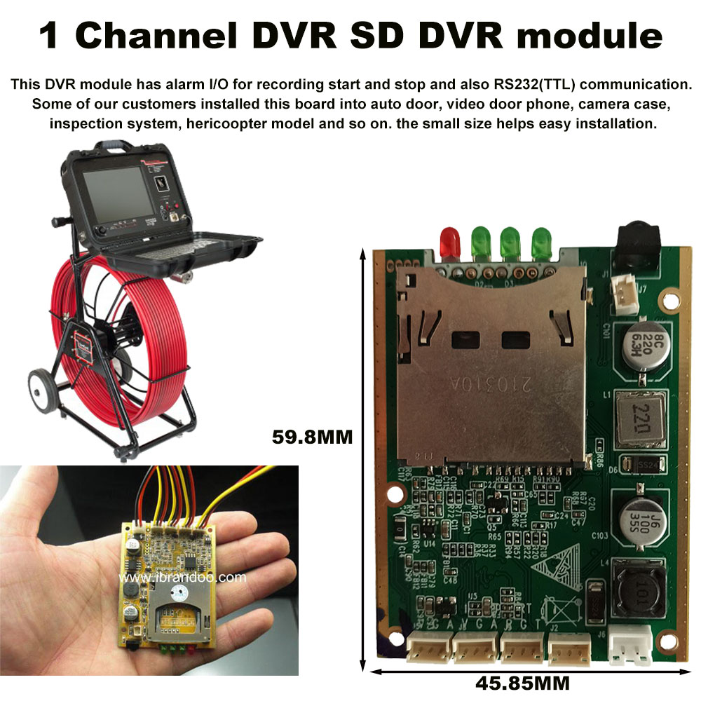 1 channel DVR SD DVR module Model 1 channel AV input and AV output Max. 256GB Sd Card Memory Alarm I/O Function Start Recording