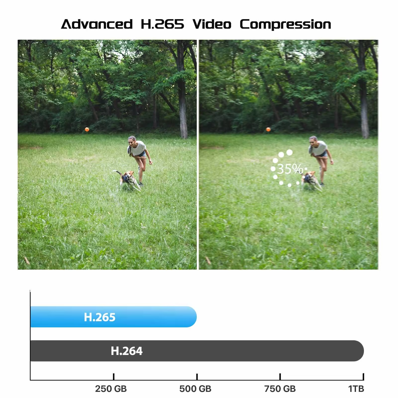 Compared to H.264, H.265+ video compression technology can save up to 50% of storage space and bandwidth resources.