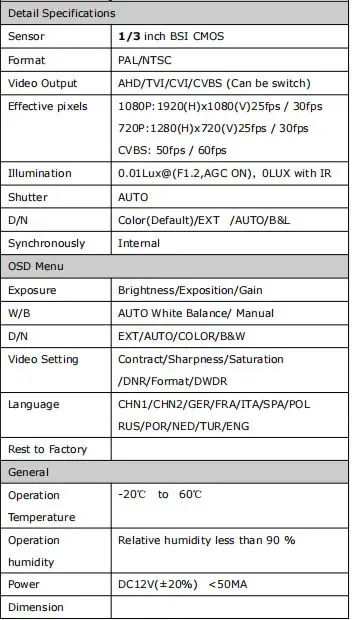 Note:1,The 1080P AHD Camera Must be work with AHD DVR(Not Analog DVR or 720P AHD DVR)