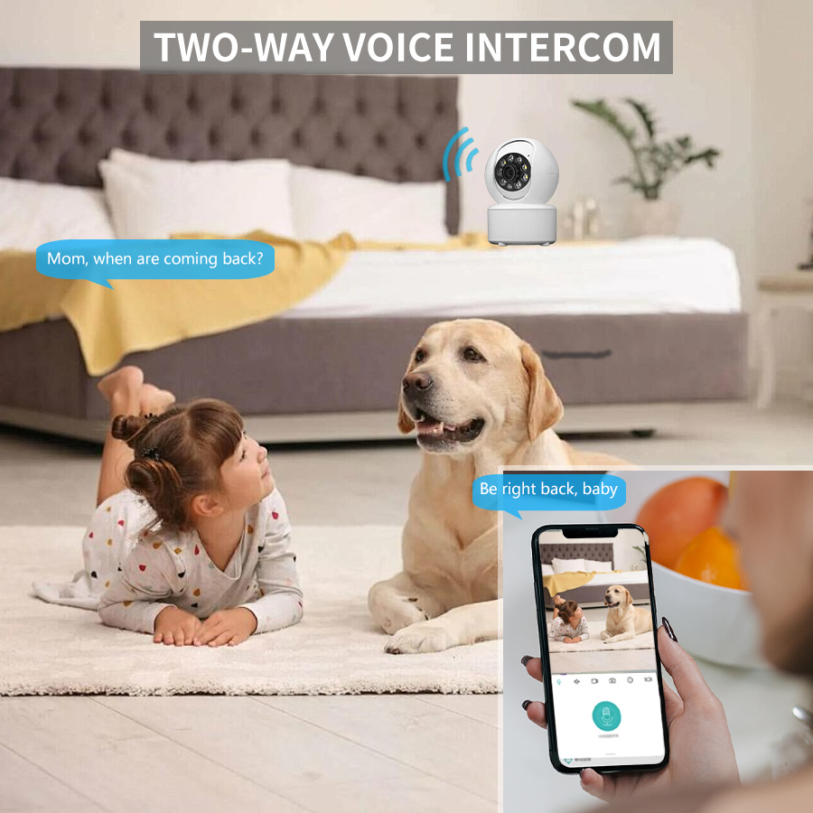 The security camera is equipped with a built-in microphone and speaker. No matter where you are, you can have two-way voice conversations with the family members in the monitored area to stay informed about the latest events.