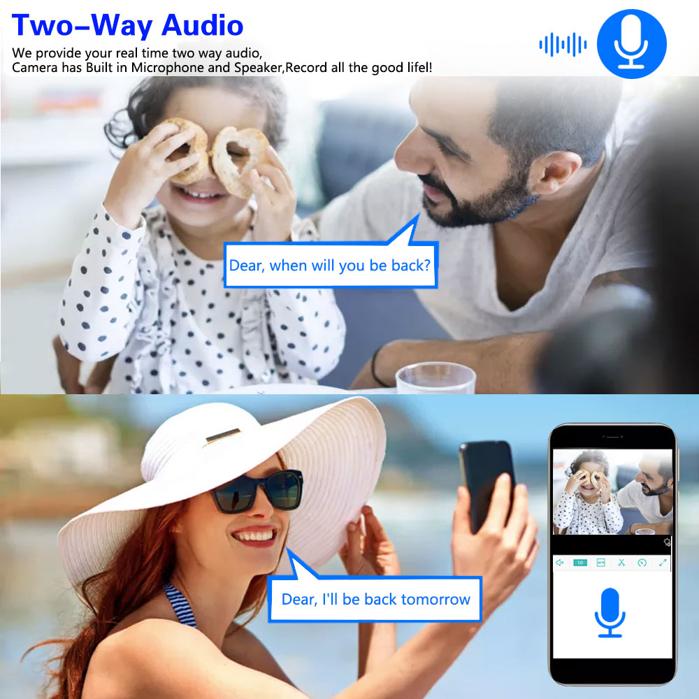 We provide your real time two way audio,Camera has Built in Microphone and Speaker, Record all the good life!!!