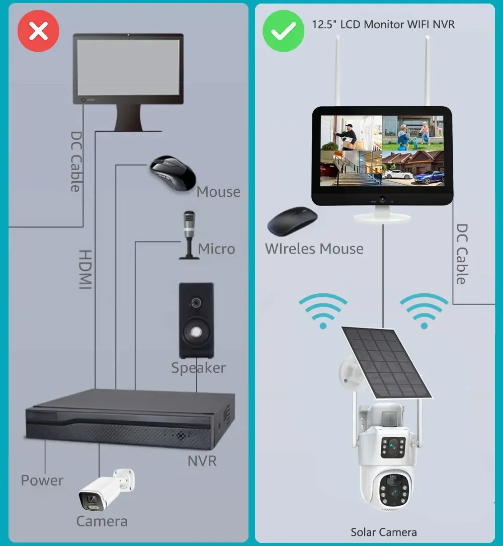 Enjoy all the advantages of wireless security systems, such as flexible installation locations, easier wiring, and less damage to your decor. It can be placed anywhere, especially for solar cameras that do not require power connection, and can be installed anywhere you want!