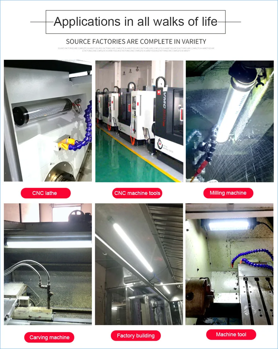 Various CNC equipment, CNC machining centers, engraving machines, drilling and tapping machines, laser welding machines, ceramic processing machinery, CNC machine tools, and other equipment lighting.