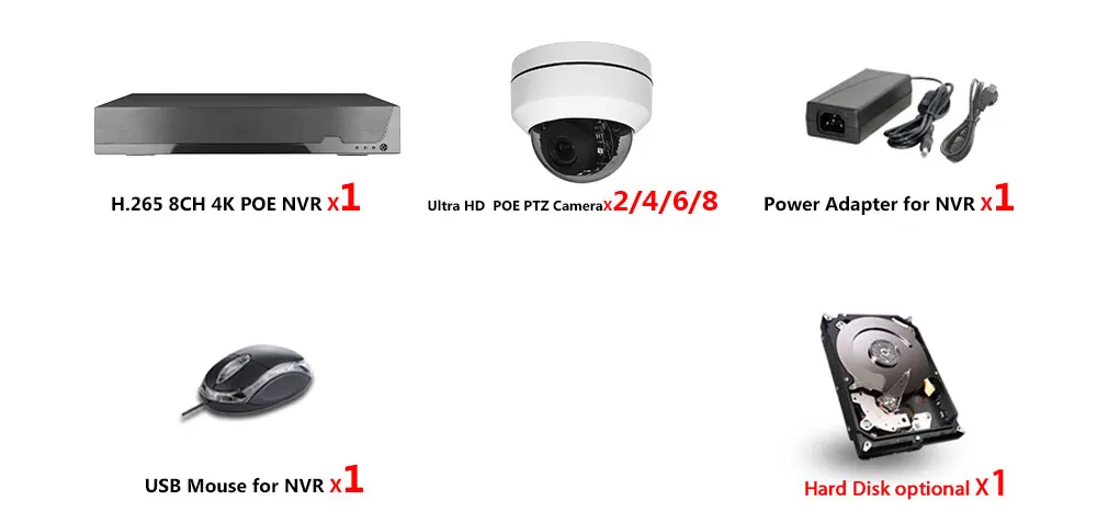 2/4/6/8 x H.265 HD 8mp POE IP indoor outdoor IR Day Night vision weatherproof cameras;