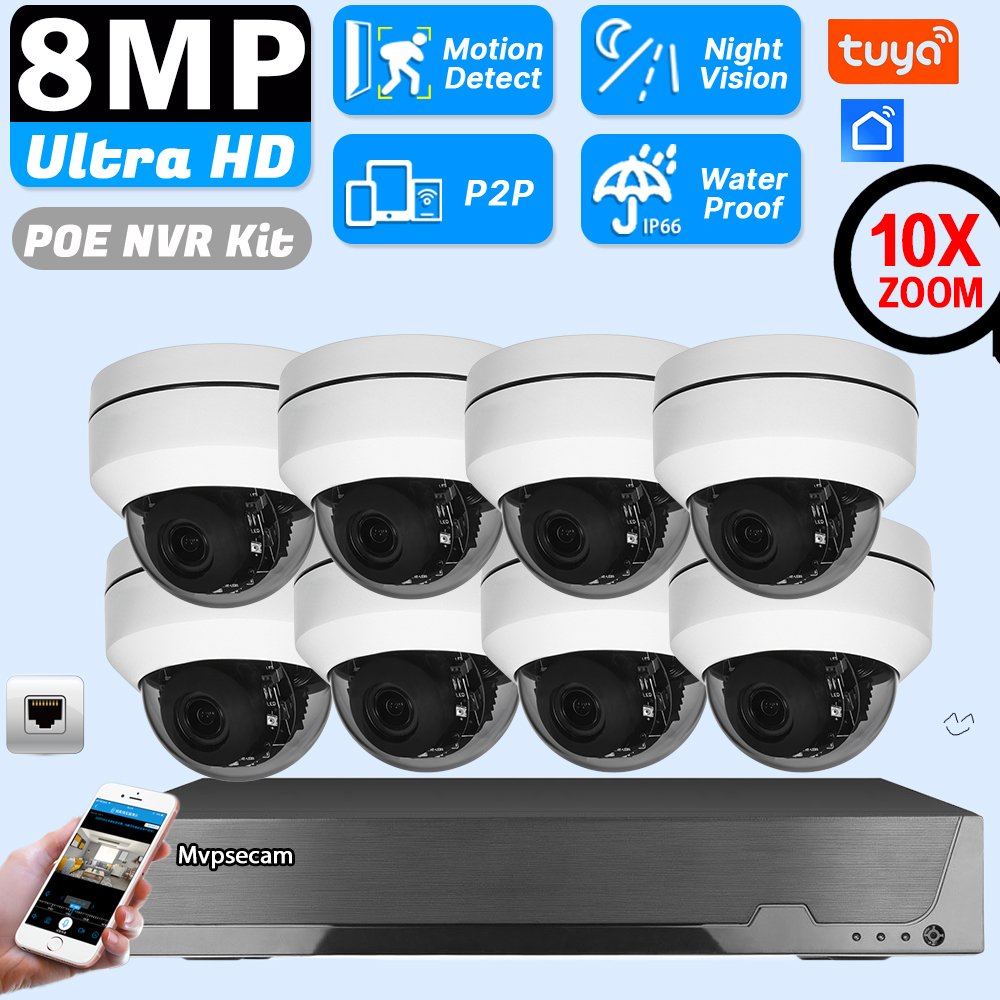 10X Zoom 4K POE PTZ Dome Camera Security System Kit 8CH Tuya POE NVR System Audio Record CCTV Video Surveillance Kit Smart Life