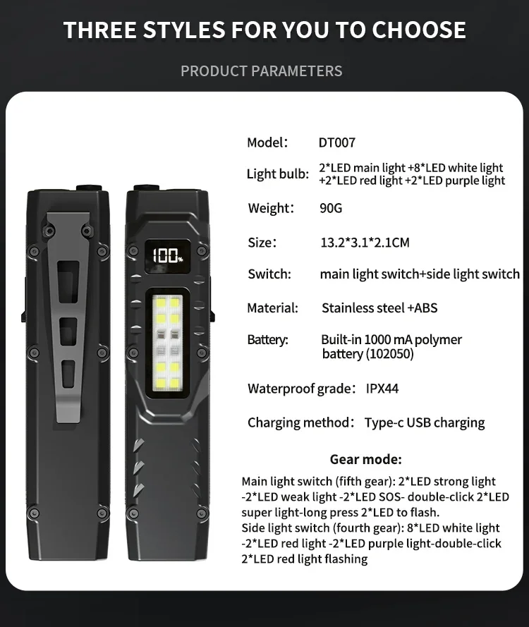 The side lights have four gears(single click)