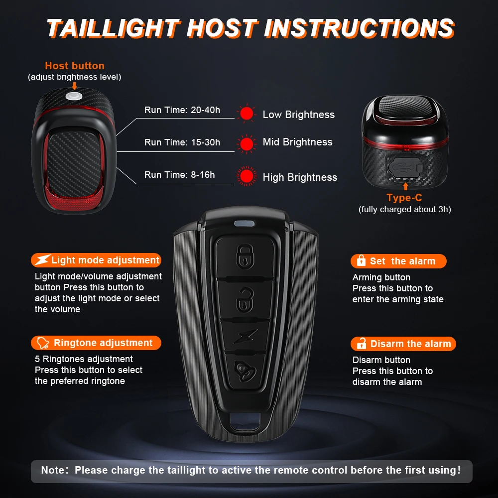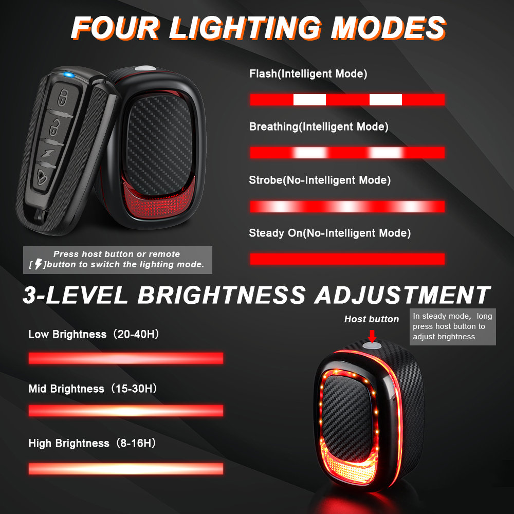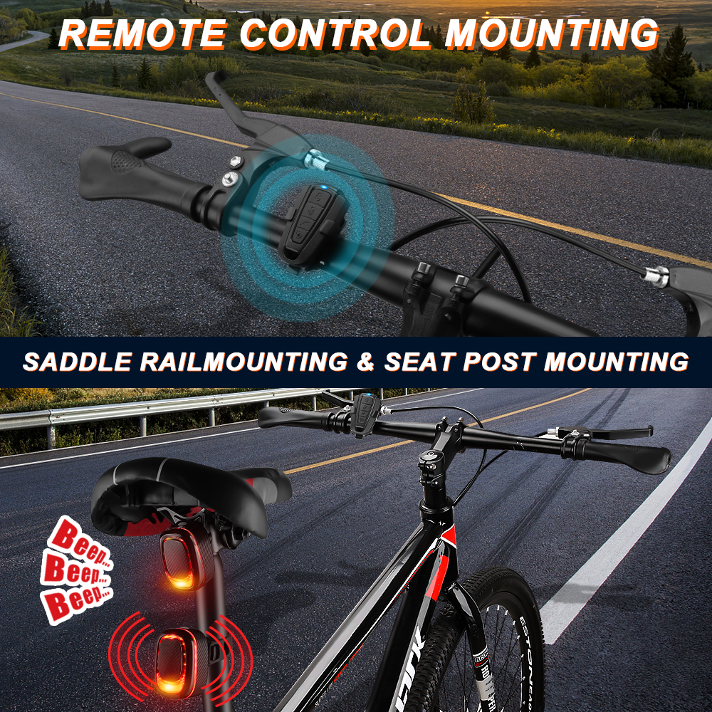 【Extremely Loud 115dB】The bike security alarm can make a loud sound to draw people's attention. 115dB Loud can effectively scare thieves away, can also be used as a bright taillight, intelligent remote alarm, and bike horn. Two mounting methods for all types of bicycles (please refer to the instruction manual for details)
