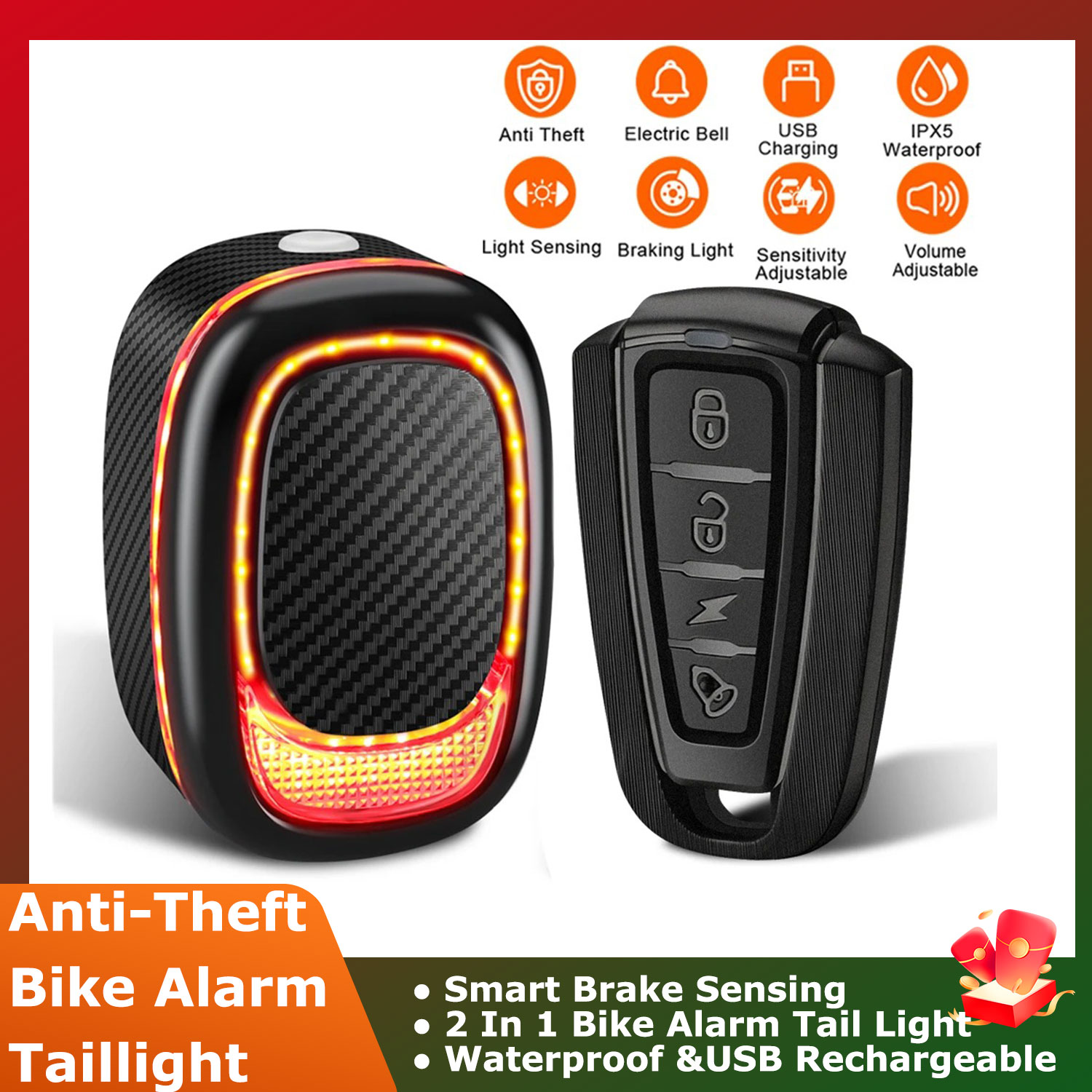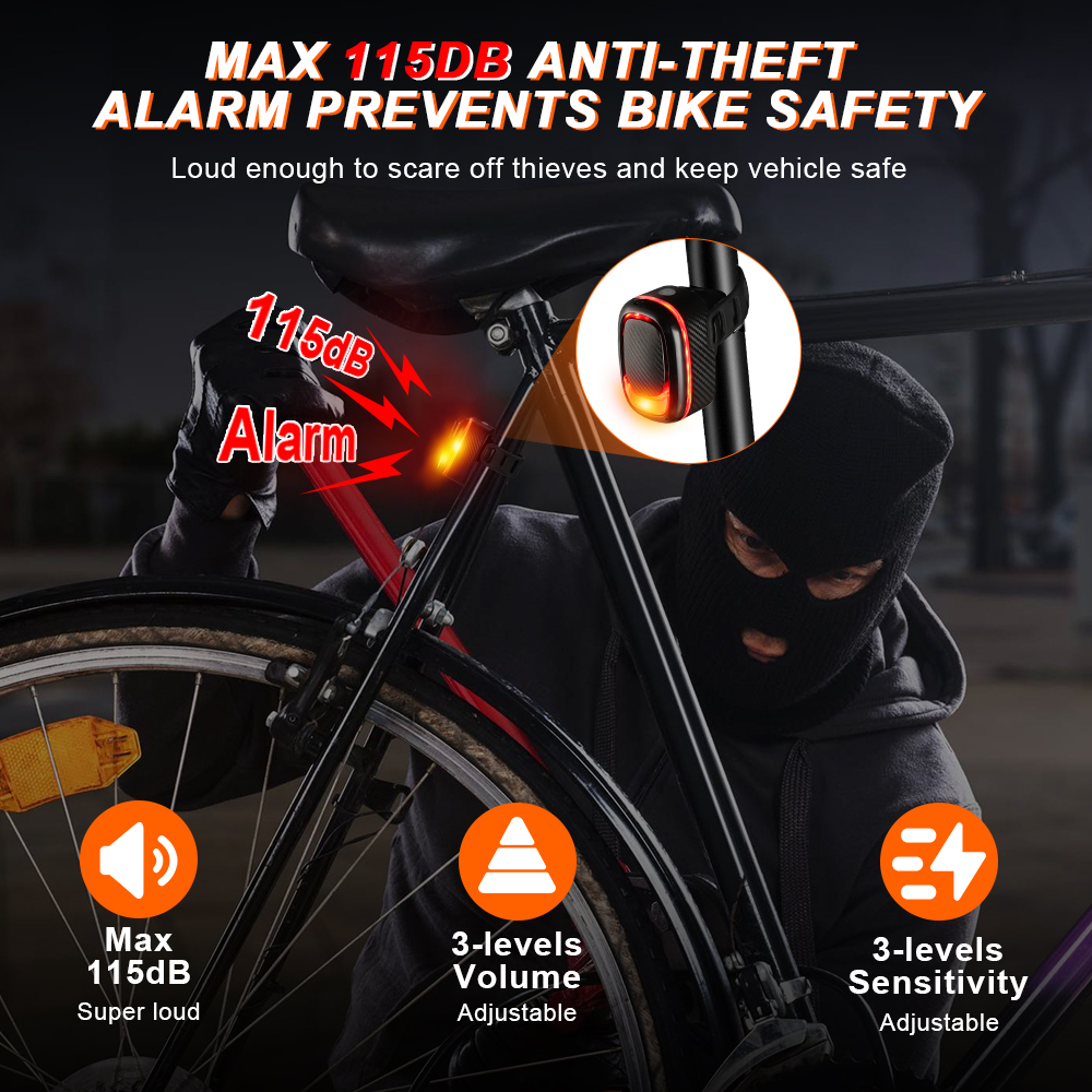 【2 In 1 Bike Alarm Tail Light】Multi-function anti-theft alarm tail light designed with bike alarm, COB LEDs, and 200-degree wide-angle design, the led bike light will make you more visible for other road users in dark night or daytime. Keeping you safe at all times.