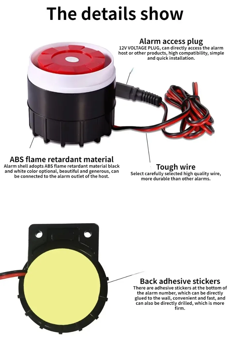 Alarm shell adopts ABS flame retardant material black and white color optional, beautiful and generous, can be connected to the alarm outlet of the host.