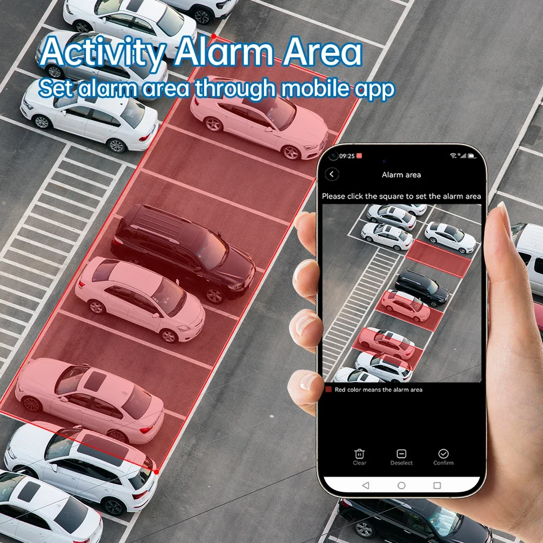When detecting someone within range, the camera will sound an alarm and push the message to your smartphone via V380 Pro app.