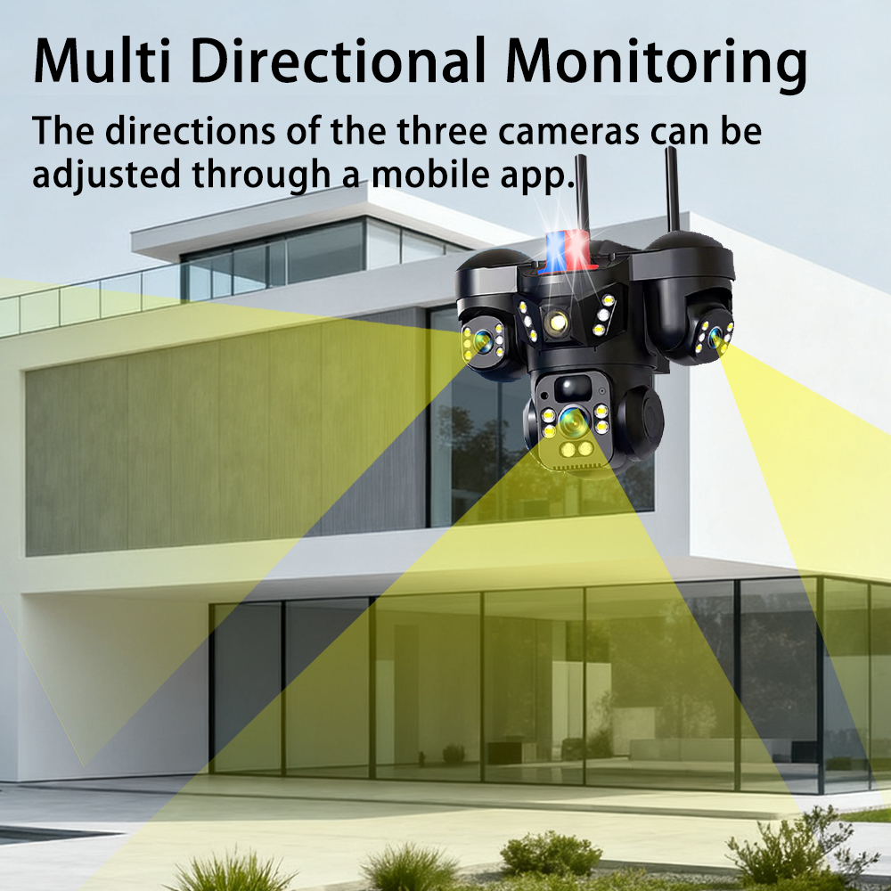 15MP Three Lens Three Screens 4G Solar Camera Outdoor WiFi 10X Digital Zoom Waterproof Auto Tracking Security CCTV Cameras V380
