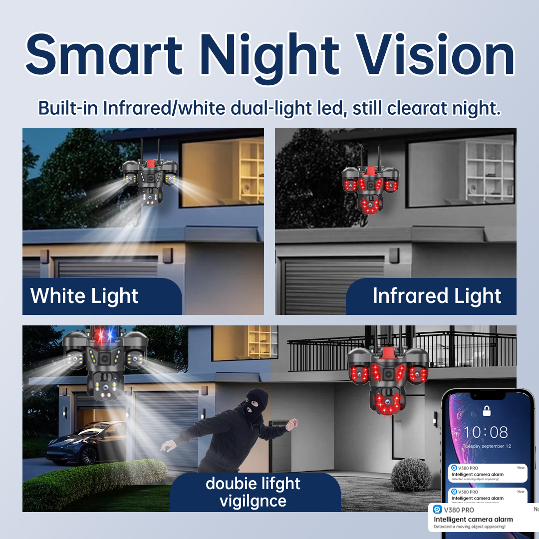 10. 4mm +4mm+4mm+8mm lens,10X optical hybrid zoom,built-in infrared light + white light, IR distance 20 meters