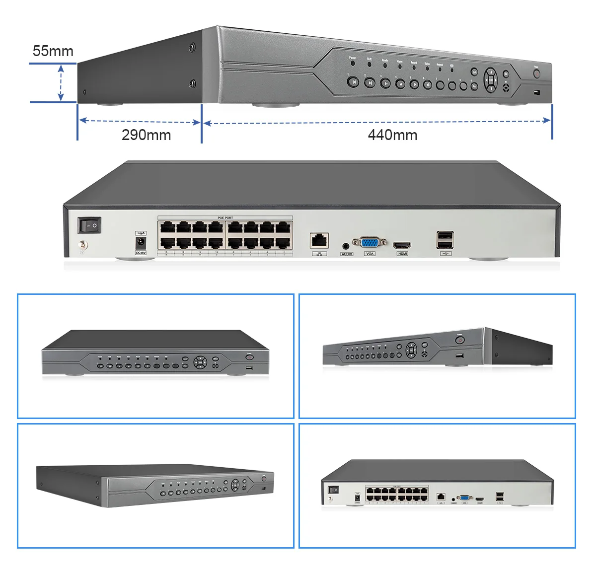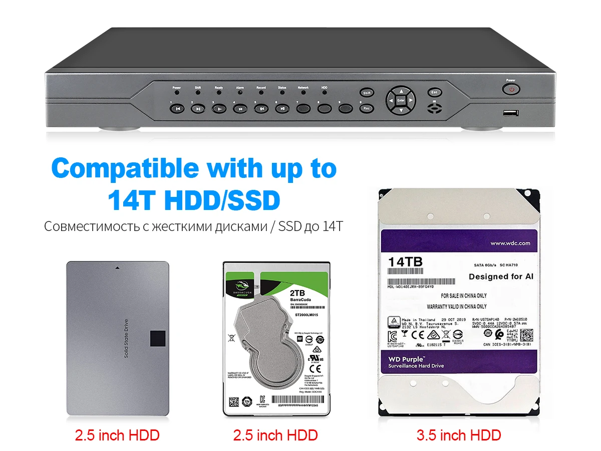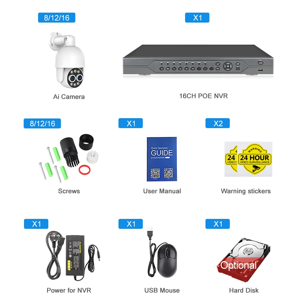 16CH POE NVR + 8 Cameras/16CH POE NVR + 12 Cameras/16CH POE NVR + 16 Cameras for Optional