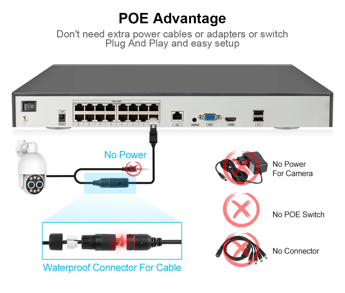 Save Money and Convenient, POE NVR = NVR + POE Switch