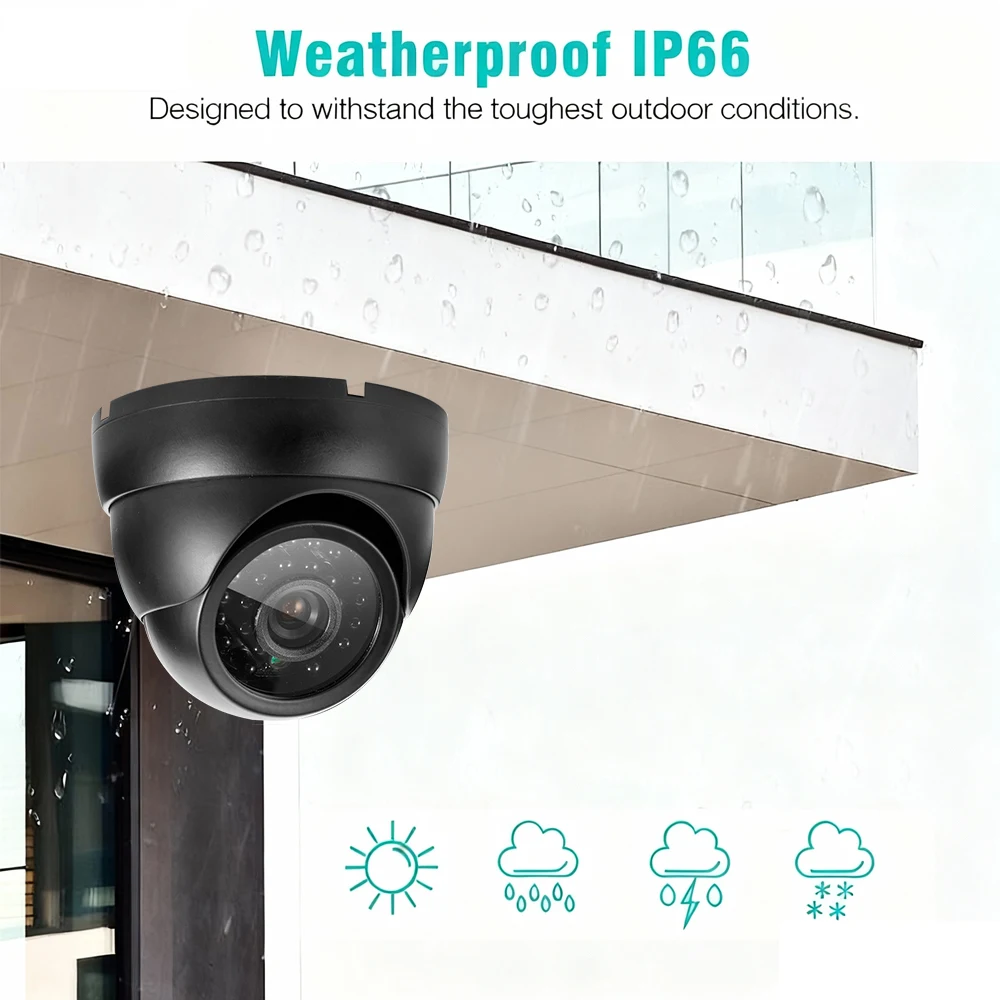 Use them as outdoor cameras or indoor cameras, as they are built tough towithstand whatever the weather throws as then:rain,snow,dust and hot days .with IP66 weatherproof rating ,and cables threaded through the stand for extraprotection ,ensure you can reply on their performance,day in ,day out.Our camera adopts heavy-duty metal housing,professional IP66 weatherproof,Providing stable performance both indoor and outdoor.