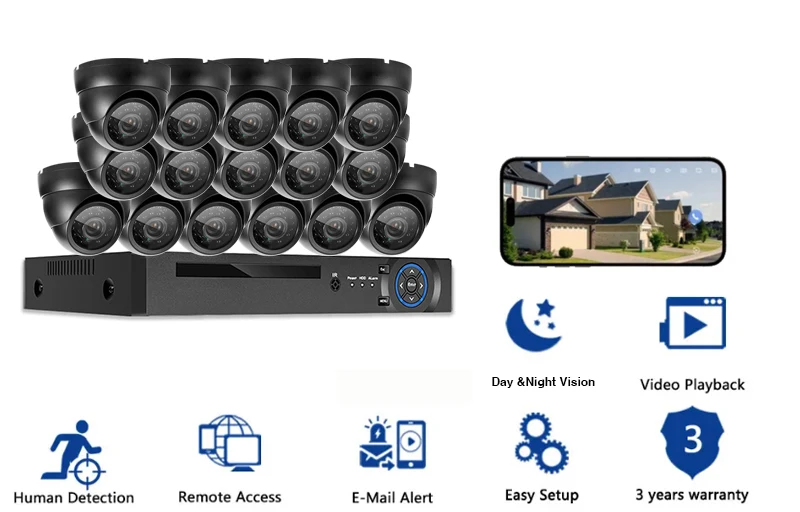 High-Definition interface output,Suport for online playback,Mobile remote,Multi-window display with 8.0MP Resolution.The angle will be more larger,and the image will be more clearer.