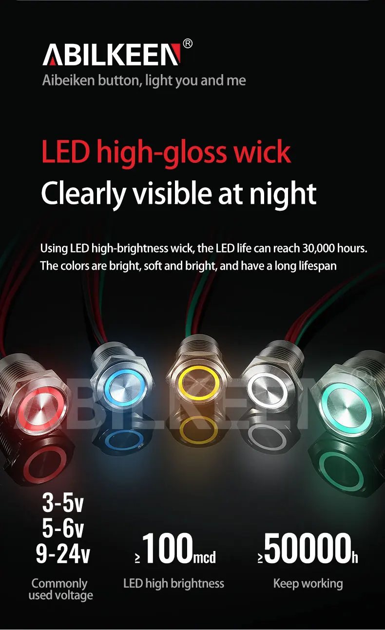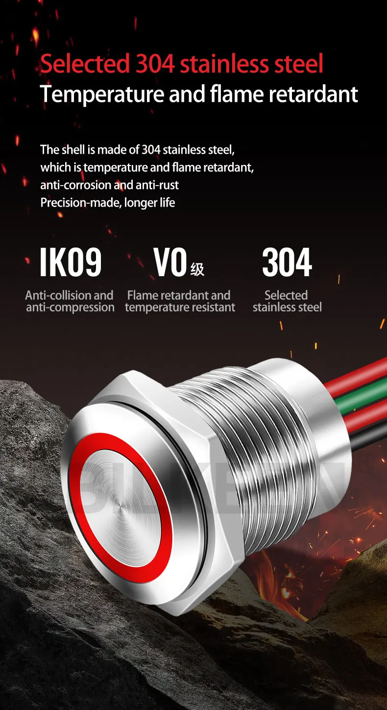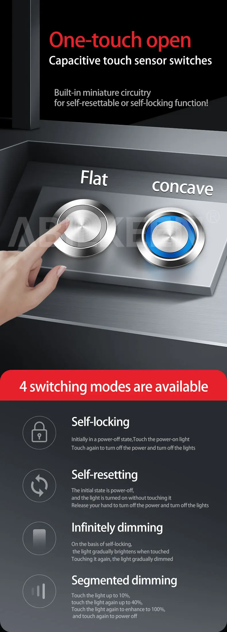 16MM Concave/Flat Head Stepless Dimming/Segmented Dimming Function Touch Push Button Switch DC12/24V LED Ring Light Touch Switch