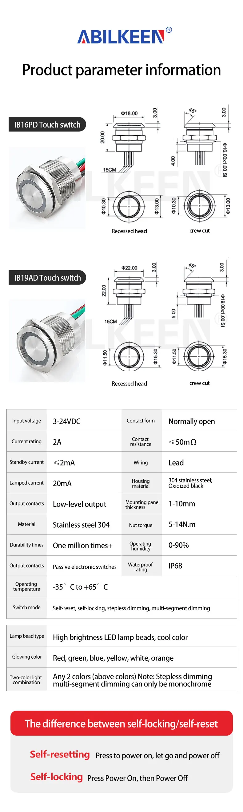 Note: 1.This Product Link is Sale IB16AD/IB16PD (Short Type) Touch Switch,If You Need IB16A/IB16P(Long Type) Touch Switch, Please Contact Our Store.