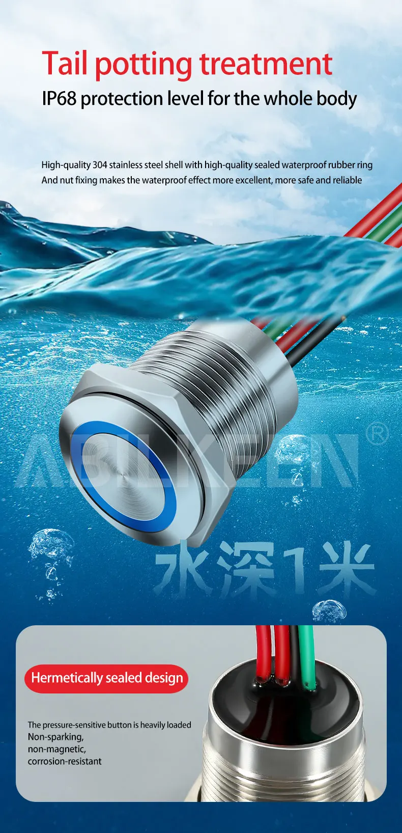 2.The working principle of this product is based on the induction control of human static electricity. It is IP68 waterproof, but it cannot be touched underwater or with hands wet, which may cause internal electronic software to burn out.