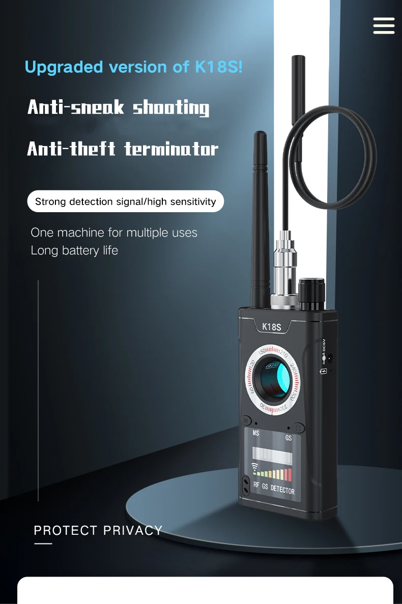 1MHz-6.5GHz GSM Audio Bug Finder K18s Multi-function Wireless Anti Detector Camera GPS Signal Lens RF Tracker Detect