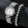 1pcs/2pcs Luxury Fashion Women Watch Set Silver Strap Ladies Quartz Wristwatch Alloy Bracelet for Ladies Jewelry Set Clock Gift