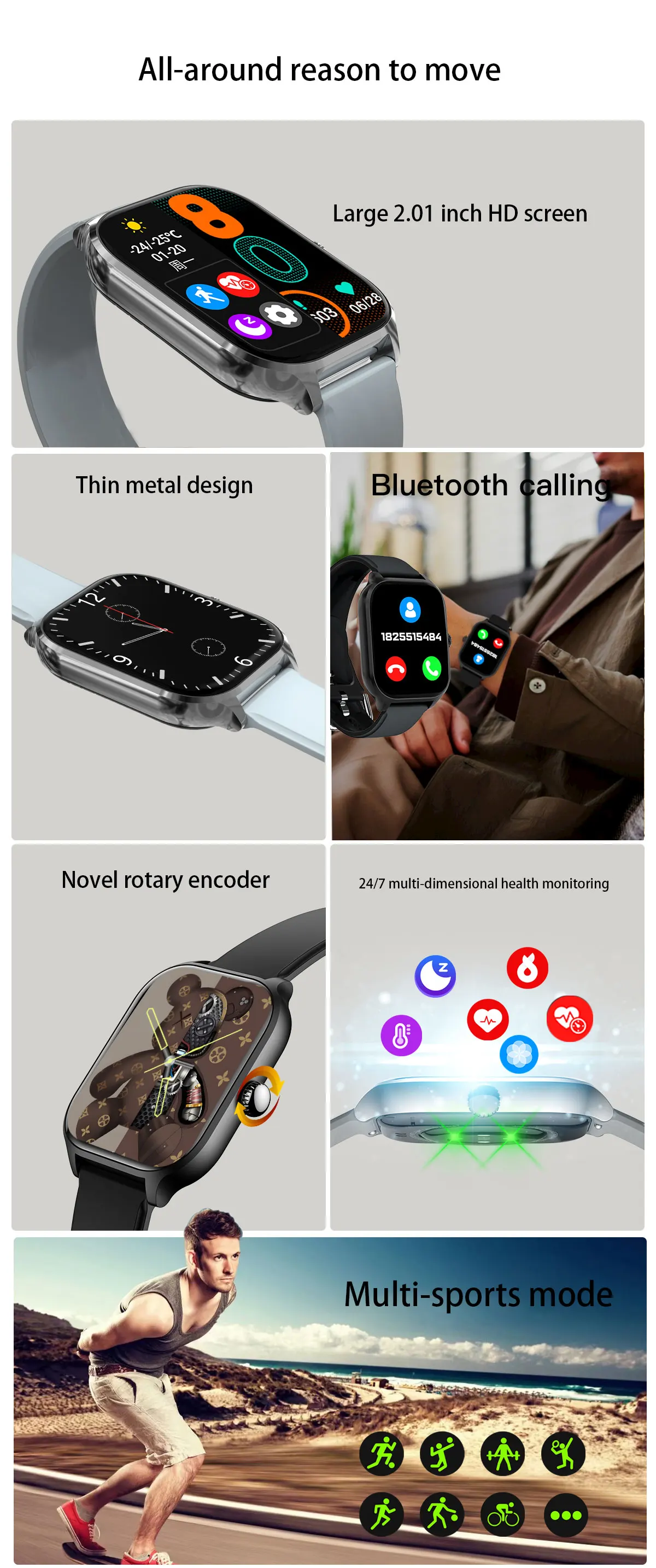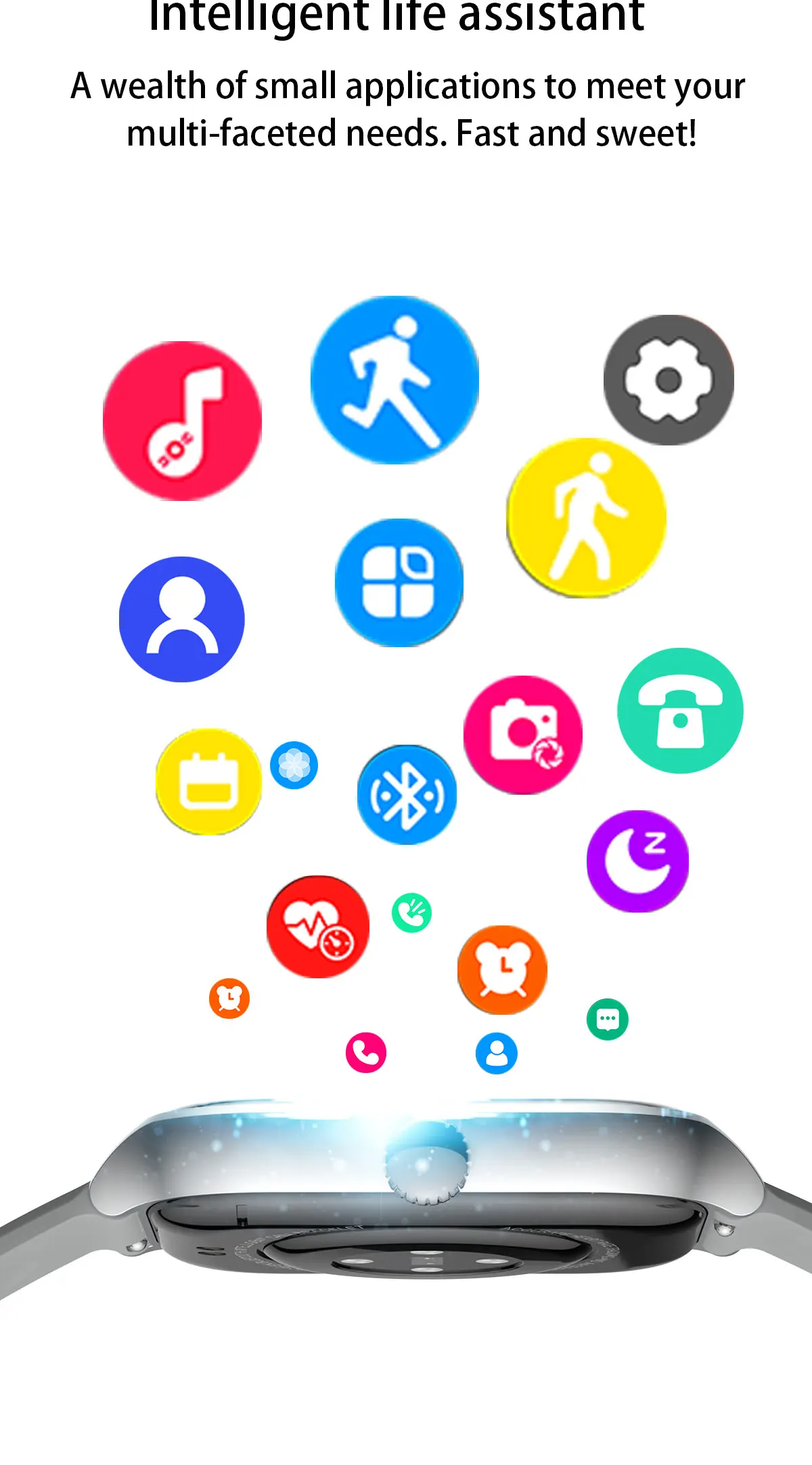 Multi-Style mode switching/5 options, Alarm clock, Calculator, Call logs, Dialer, Phonebook, Settings, Remote photo capture, Bluetooth music playback, message notification, Sedentary reminder, Sleep monitor, 19 types Sports, flashlight, Find my phone, voice assistant, Pedometer, heart rate, blood pressure, blood oxygen, Weather, stopwatch, Display, Language setting, Encoder sidebar, wristband password, factory reset, Version Information, Find a watch, QR code, Dual-mode switch, bedside lamp, Off screen clock, 12/24-hour clock switch, brightness adjustment, 2048 Games