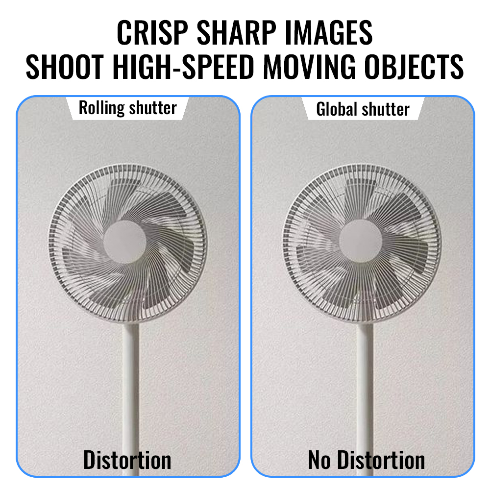 Shutter Type: Featuring a global shutter, this camera excels at capturing high-speed moving subjects with crisp, sharp images. It effectively eliminates rolling artifacts, providing a more accurate and complete picture compared to rolling shutter cameras.