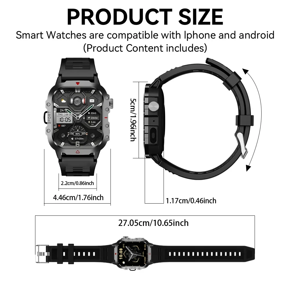 smart watch for men supports wireless dial, answering calls, as well as playing music. In addition, smart watch with message and call can receive message. Free up your hands from mobile phone and help you not to miss important message and calls, especially when driving, jogging, working out, etc.