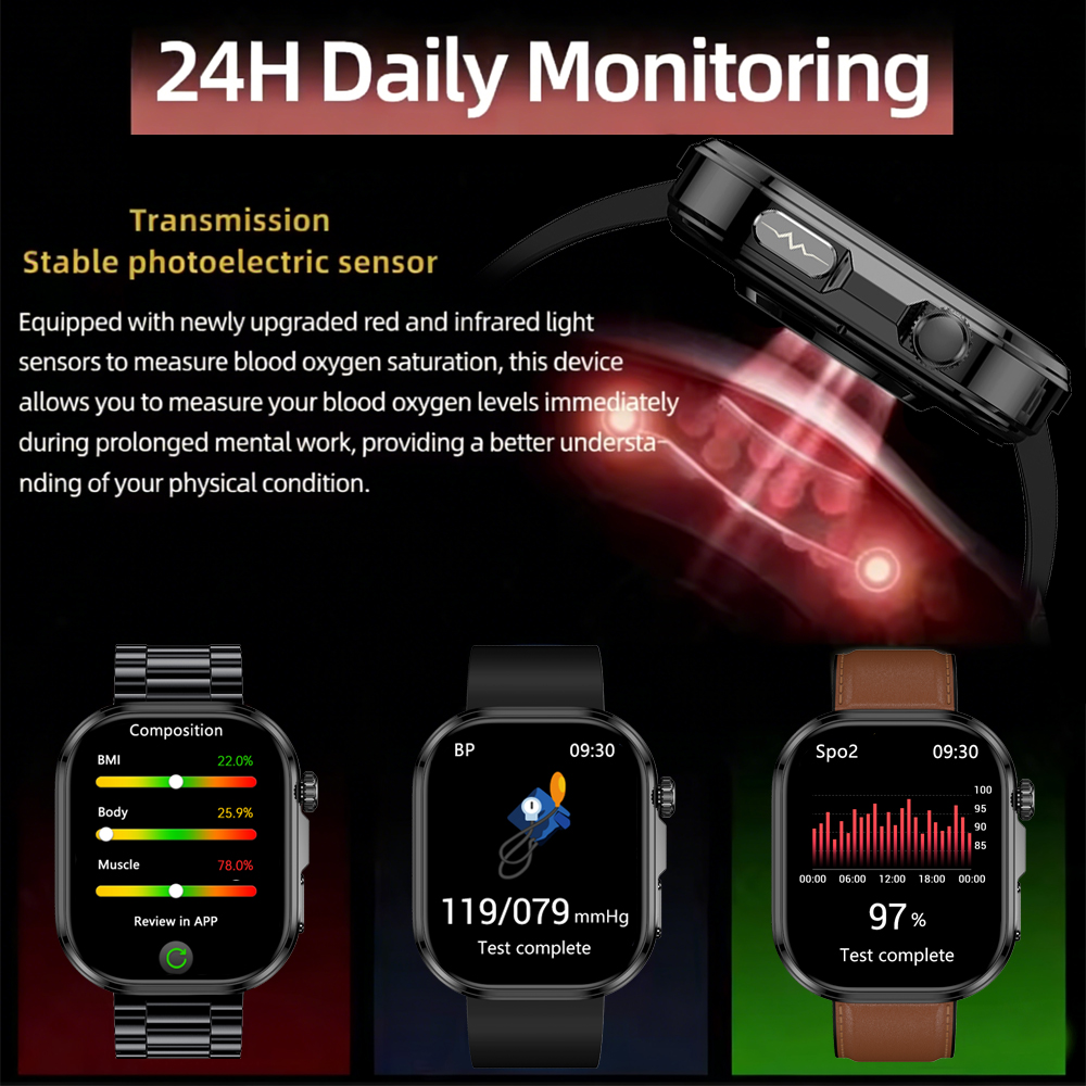 • Blood Pressure Monitoring: Accurate blood pressure measurement, providing real-time data to help you keep track of your blood pressure changes and prevent potential health risks.