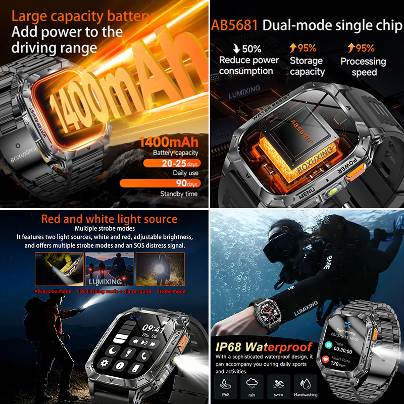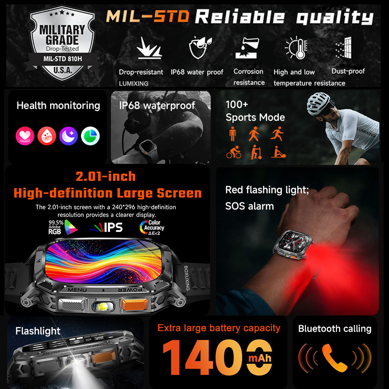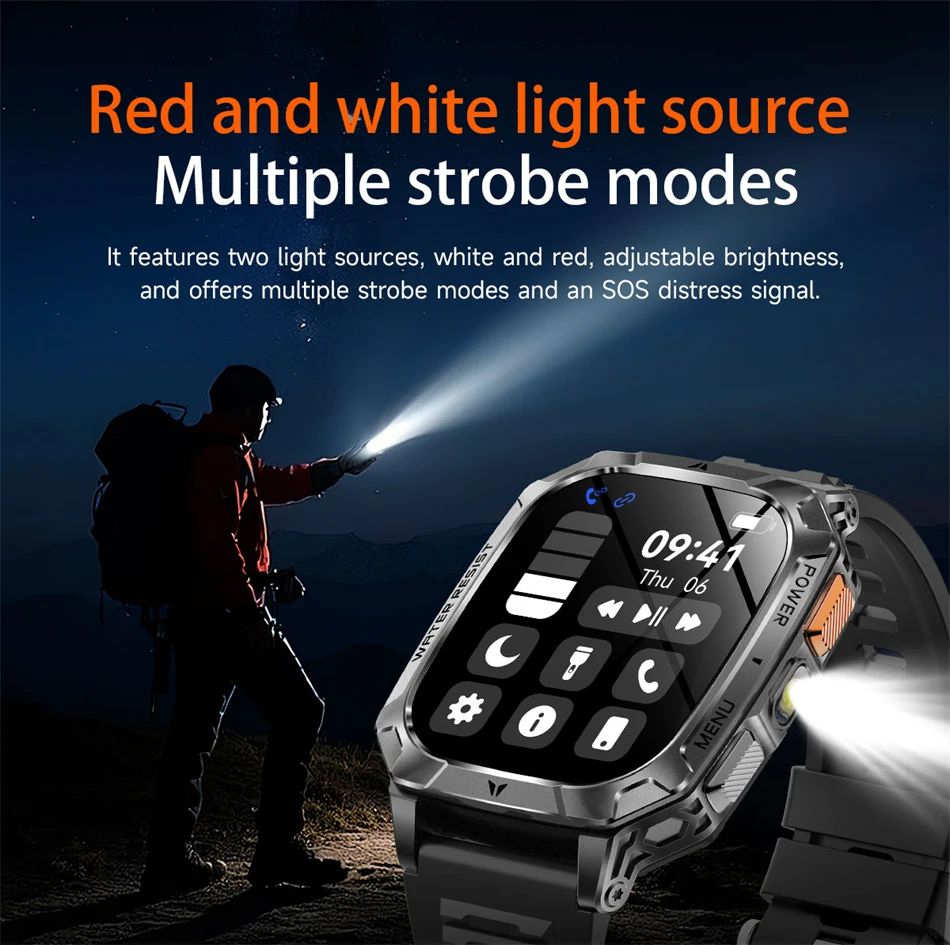 ➤Lighting: Equipped with a high-brightness flashlight with a visual distance of up to 15 meters (and supports three modes: constant light, flashing and SOS strobe mode)
