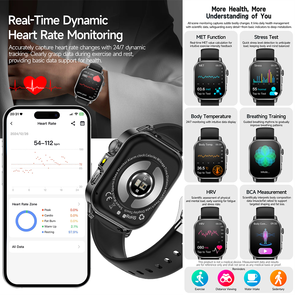 2026 New Nursing Grade Health Analysis SmartWatch ECG+PPG Blood pressure lipids Uric acid Wireless Call Smartwatch For Men Women