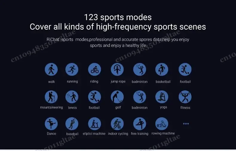 Step counting, distance, calories, sleep monitoring, heart rate monitoring, blood pressure, blood oxygen, device search, language switching, raising your hand to brighten the screen.