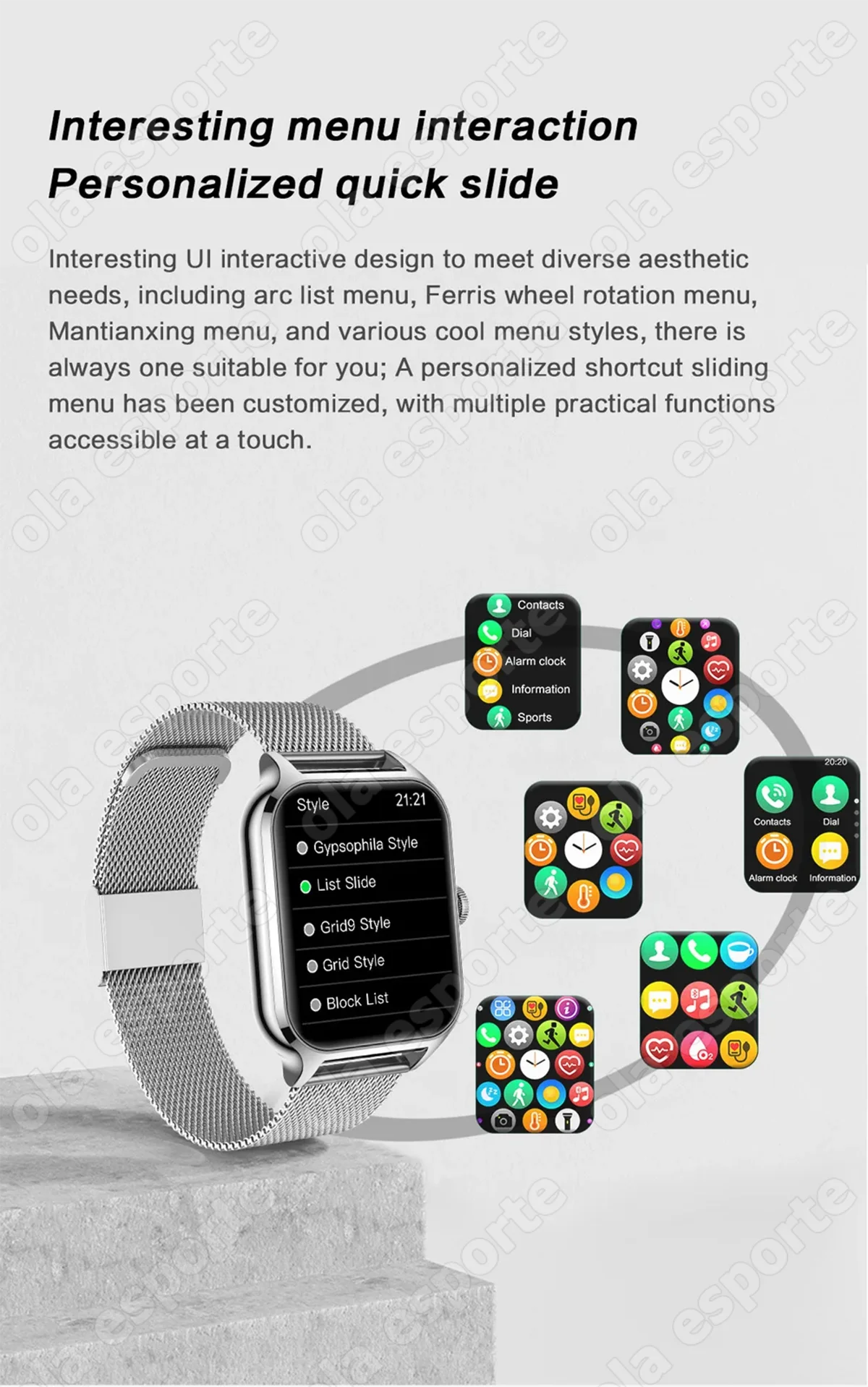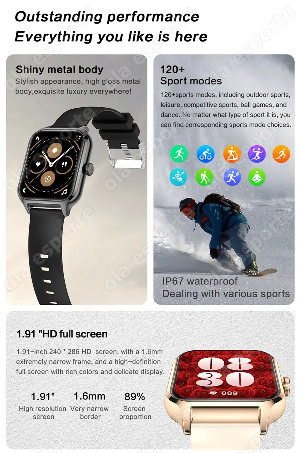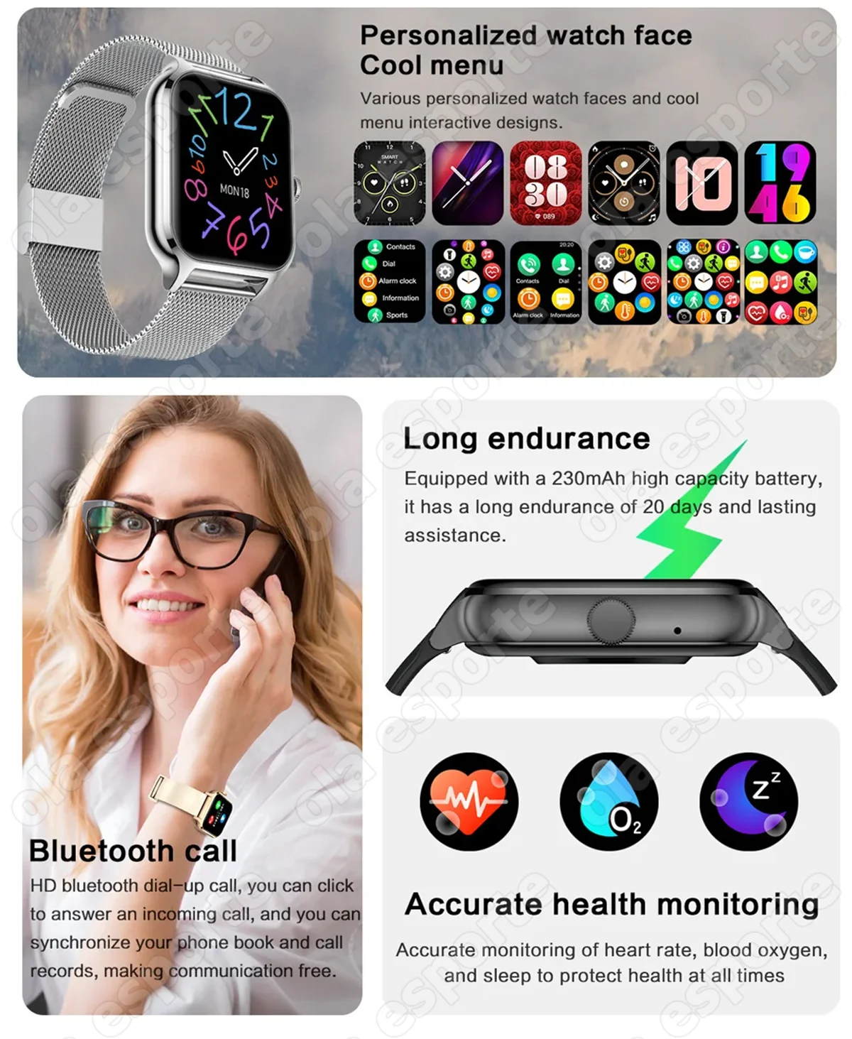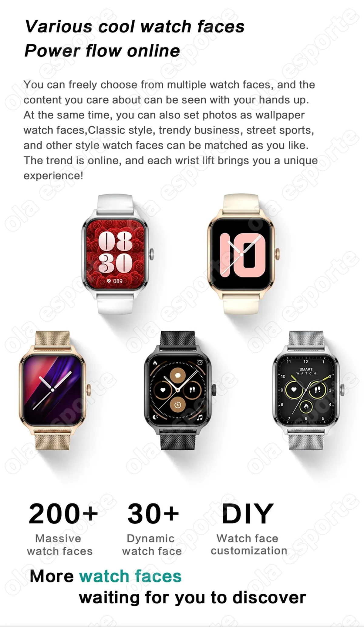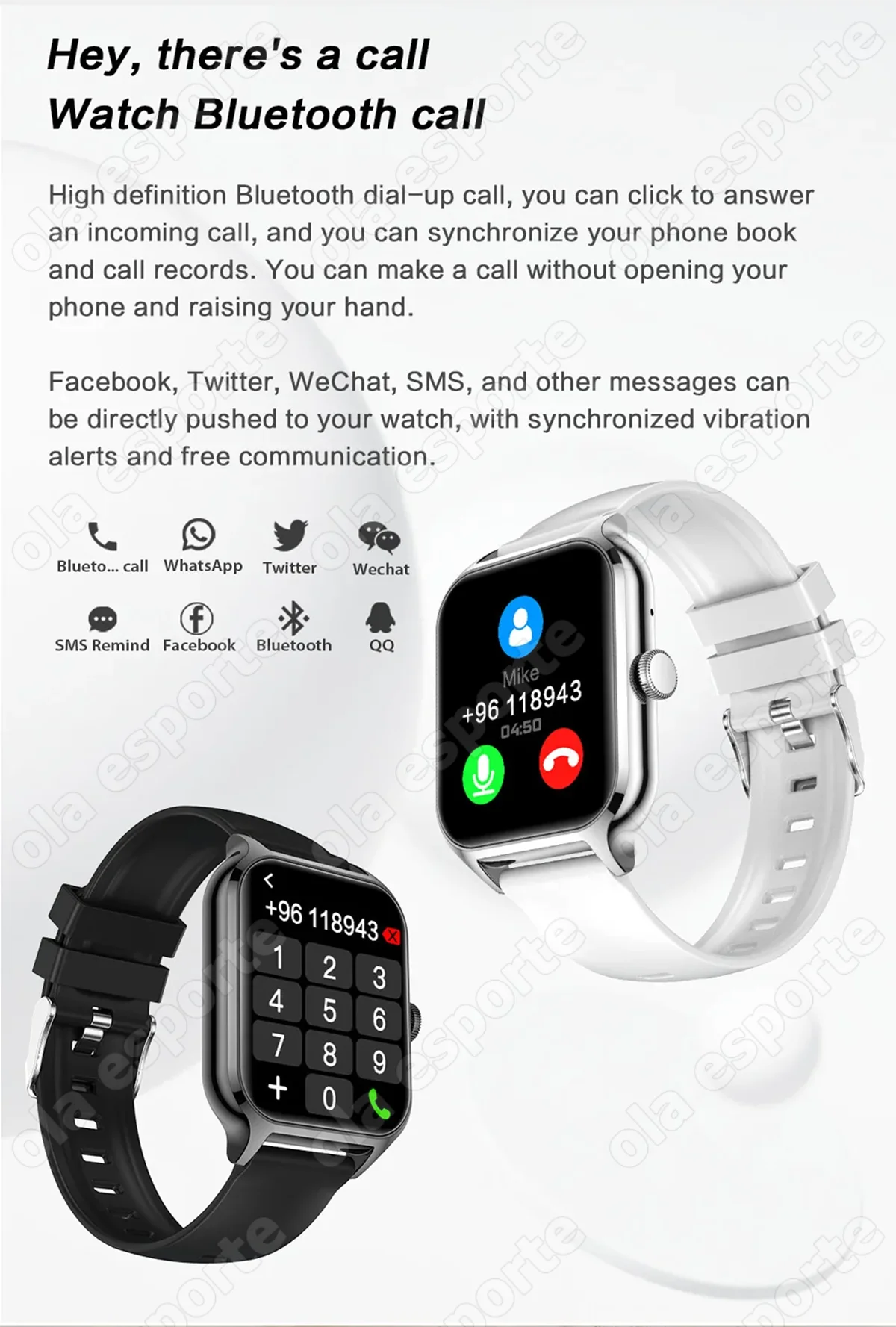 1.Bluetooth Calling :Stay connected on-the-go with the watch's Bluetooth calling feature, allowing you to make and receive calls directly from your wrist.