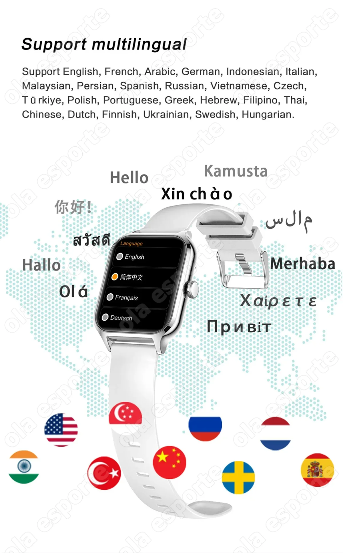 Watch supports languages:Simplified Chinese, English, German, Spanish, French, Italian, Portuguese, Polish, Russian, Traditional Chinese, Vietnamese.