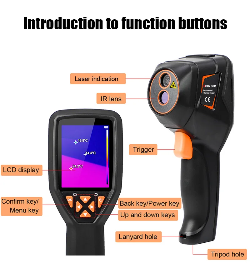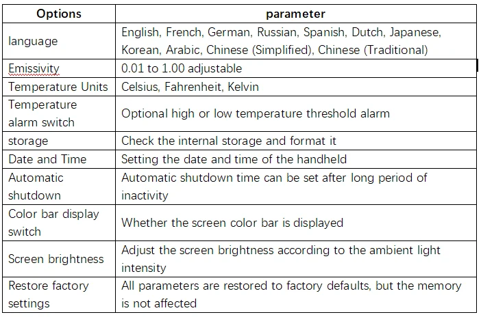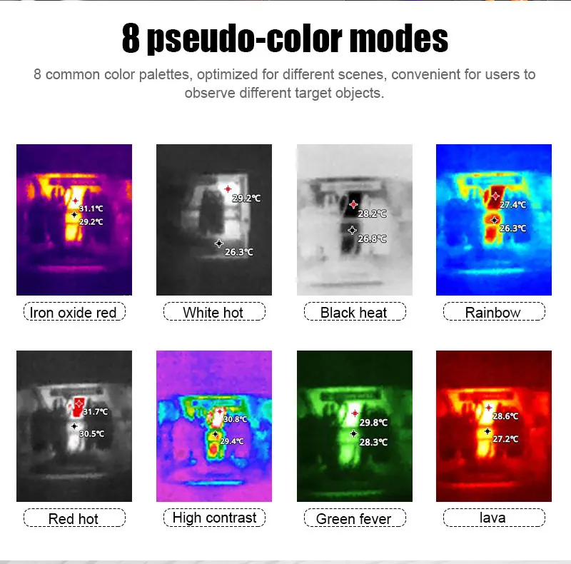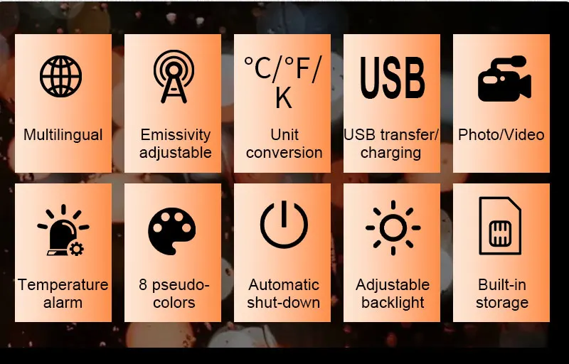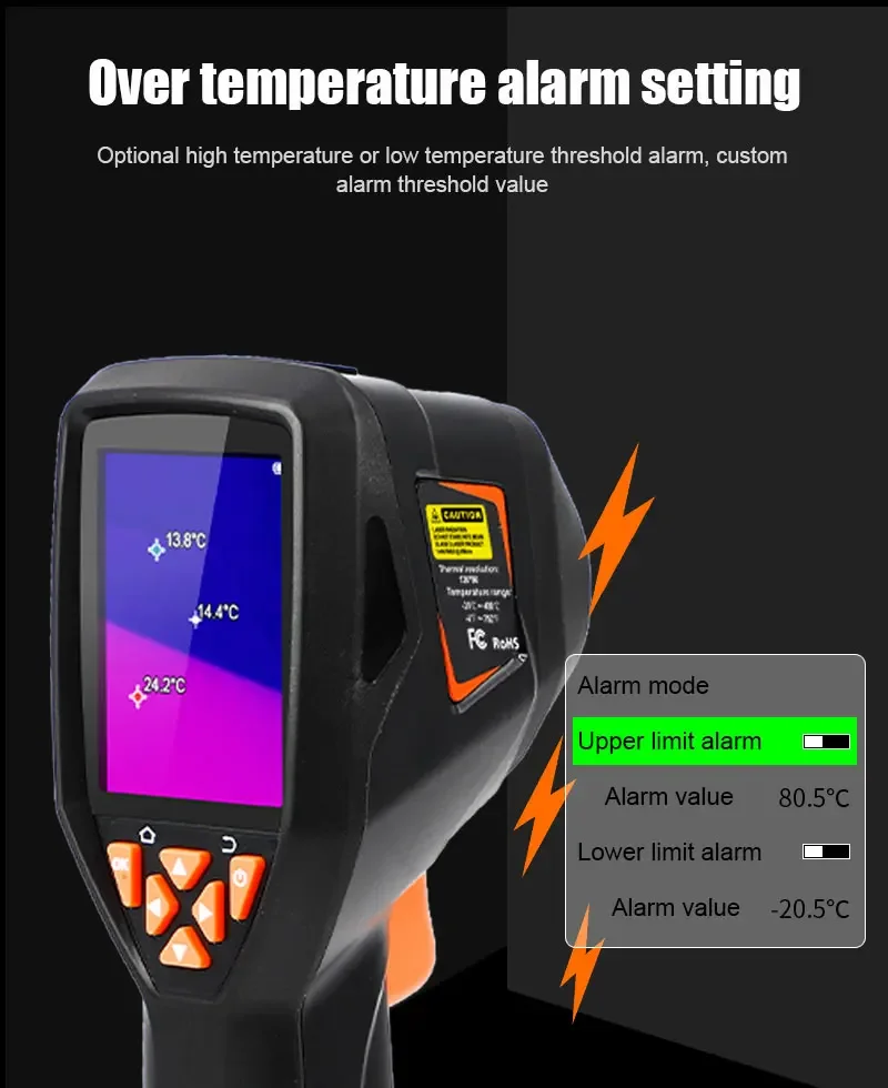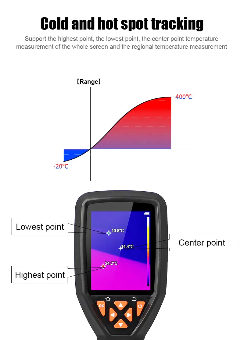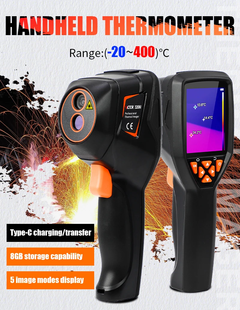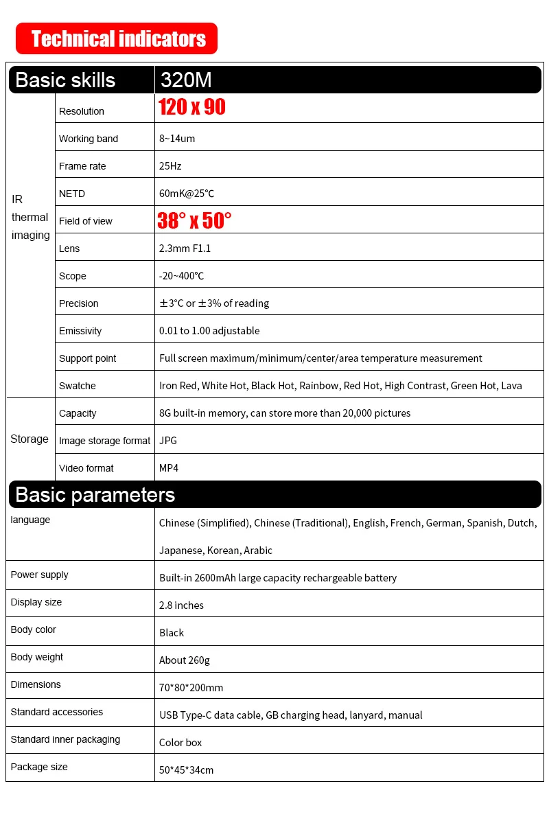 The handheld infrared thermal imager with a 2.8-inch large screen and a built-in high-sensitivity 120×90 infrared thermal imaging core. This instrument also has the features of optional multiple color palettes, multi-language switching such as English, French, Germany etc., image mode selection, built-in 8G memory, etc., which can capture the state of objects more clearly and provide help for different customer needs.