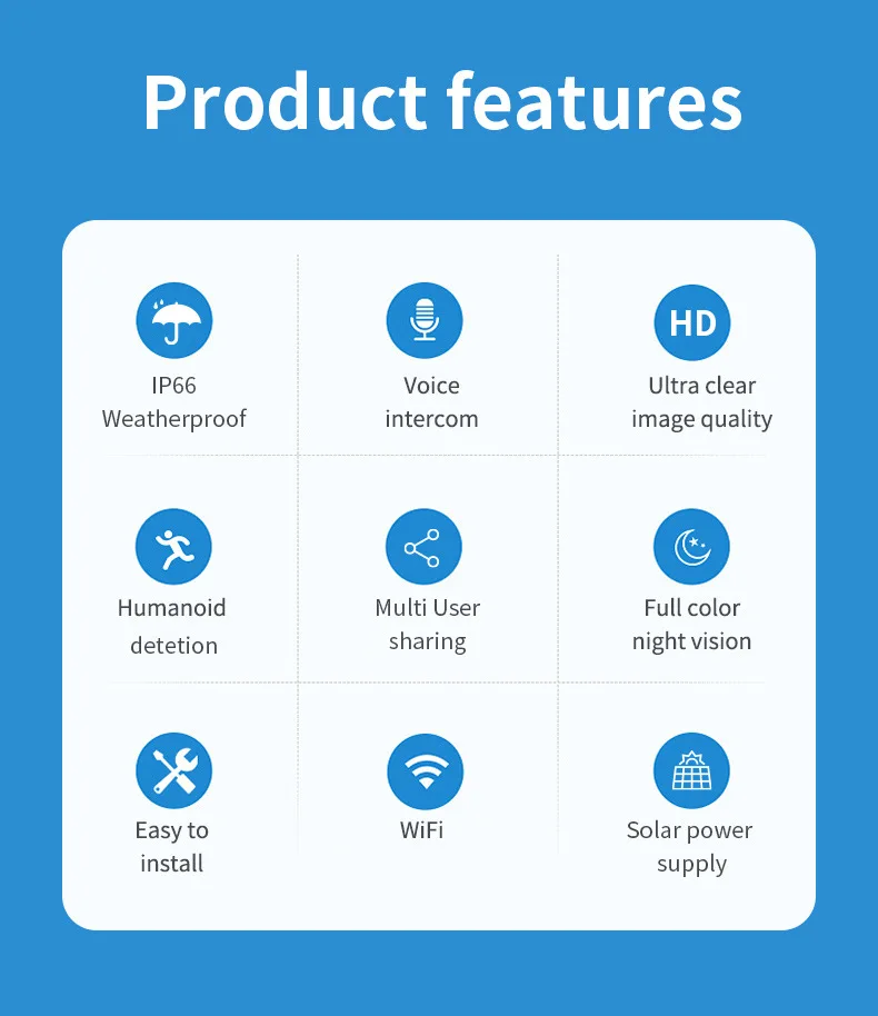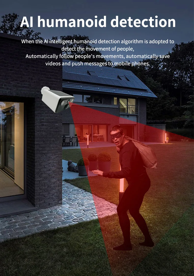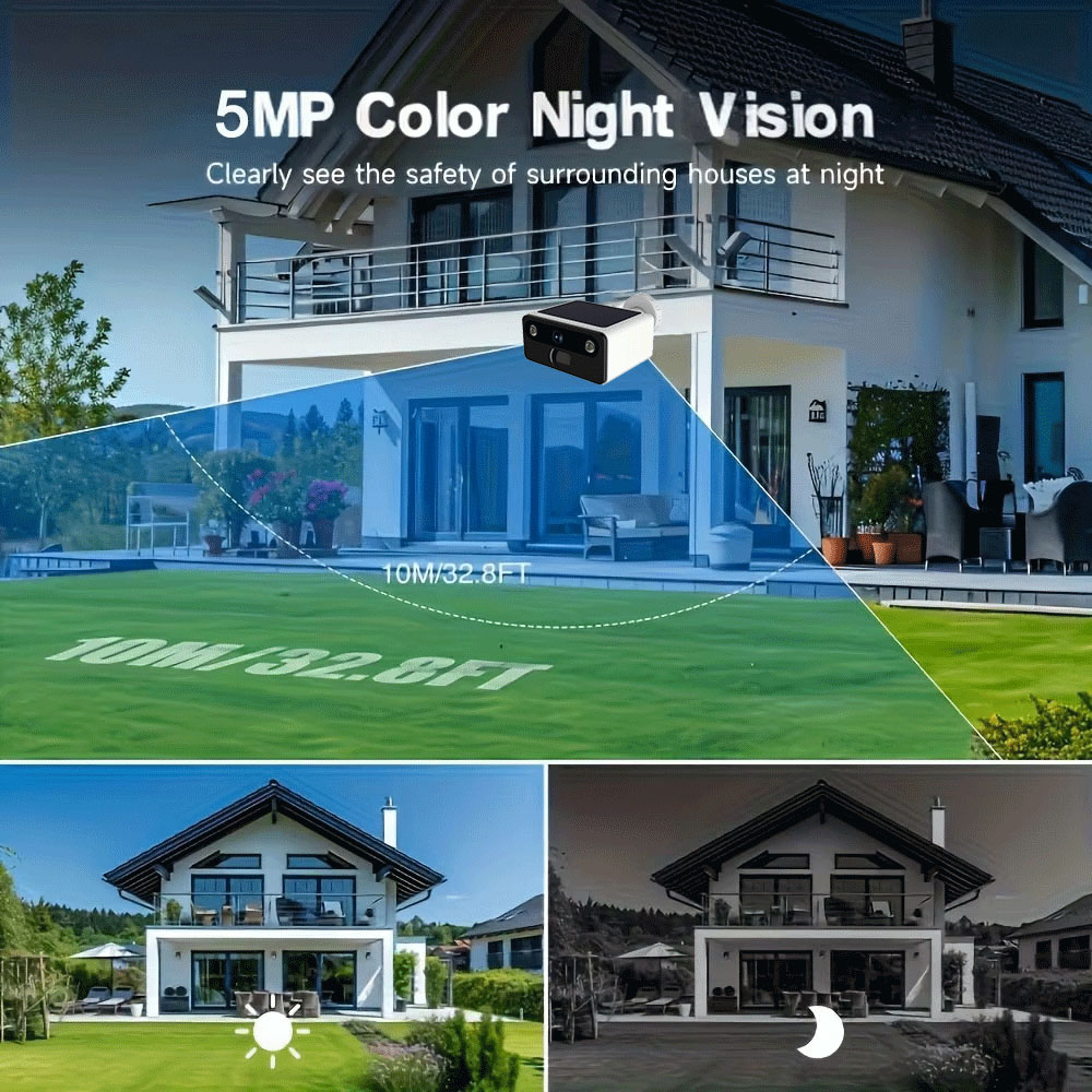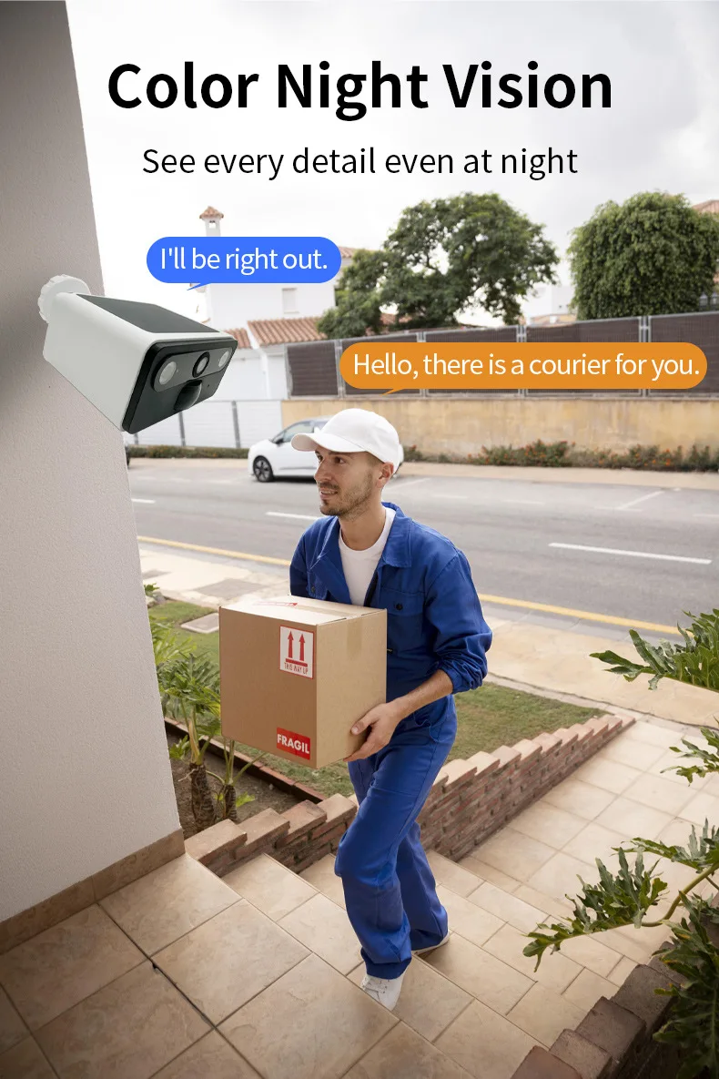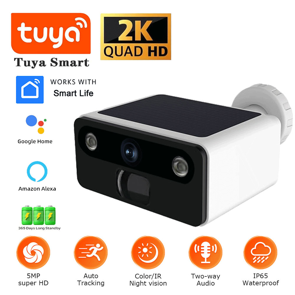 2K Tuya Solar Security Camera Wireless Outdoor WiFi Home Battery Camera Surveillance UHD 1080P Color Night Vision PIR Alert Cam