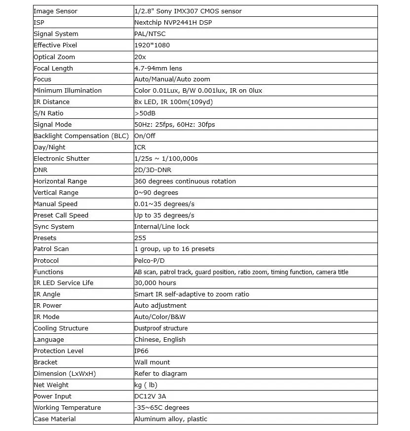 2MP 1080P 20x Optical IR 100m/109yd AHD/TVI/CVI/CVBS CCTV PTZ Speed Dome Camera