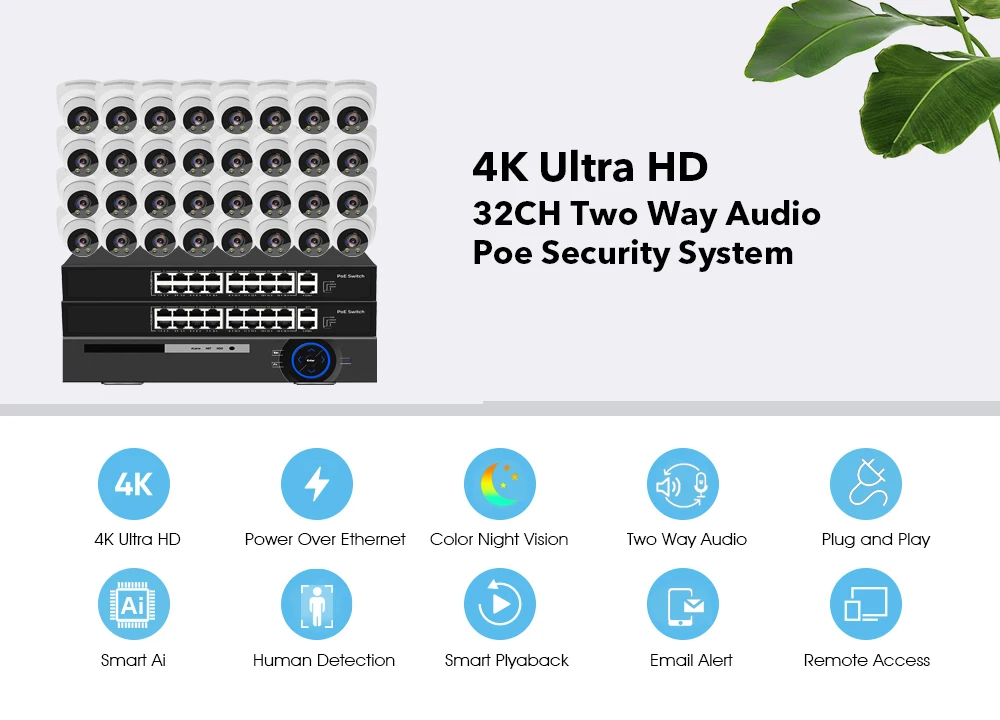 8MP POE IP Camera Paired 4K POE NVR ,with resolution of 3840×2160, delivery higher quality image. better in details.