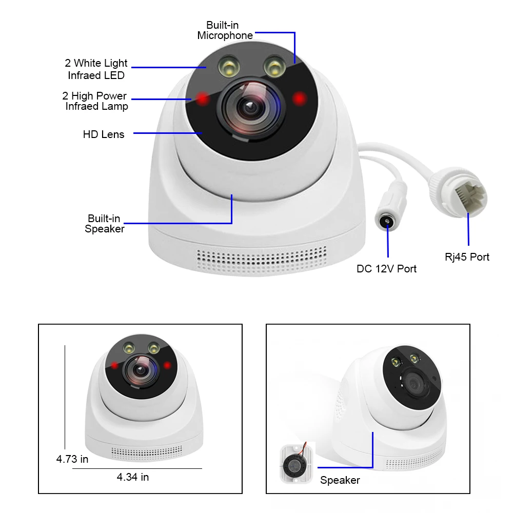 The camera is equipped with 2Pcs white lights, Support 20-30m color night vision and infrared night vision