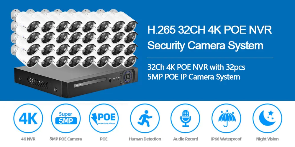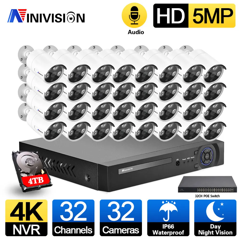 32CH 4K NVR 5MP POE Kit CCTV Security System Audio WaterProof Outdoor Day&Night Ip Camera Video Surveillance Set AI Face Record