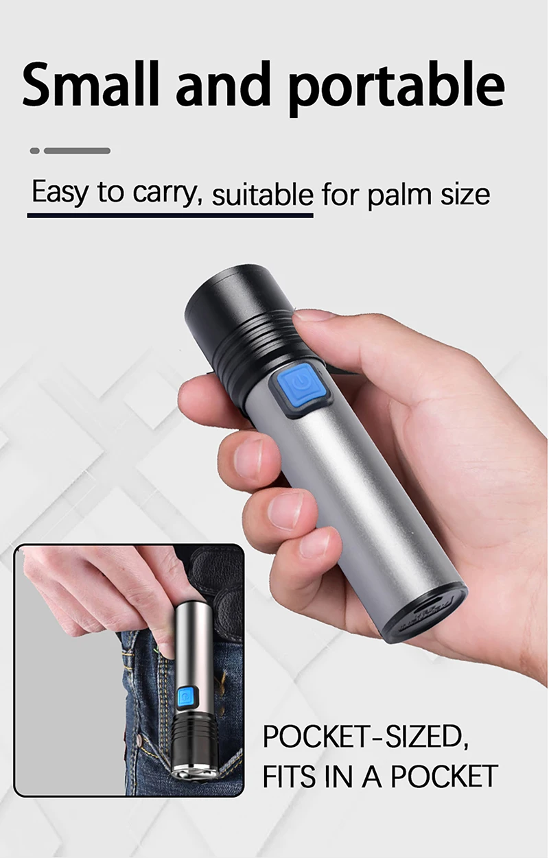 【Portable Design】The flashlight is made of durable aluminum alloy material,it enhances its heat dissipation performance, this makes flashlights more reliable and durable! It is 11.1 cm long and weighs about 71g.NO SPACE WASTE – Lightweight and handy design for easy operation in the palm.
