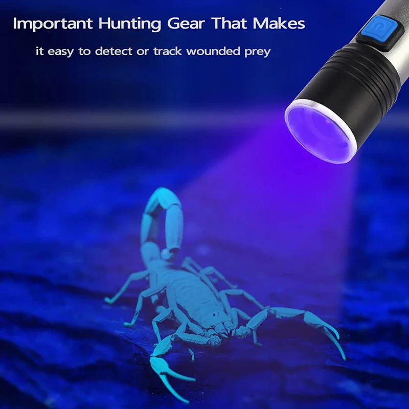 395nm UV Flashlight Blacklight Zoomable USB Rechargeable UV Light Ultraviolet Flashlight for Pet Urine Detector Resin Curing