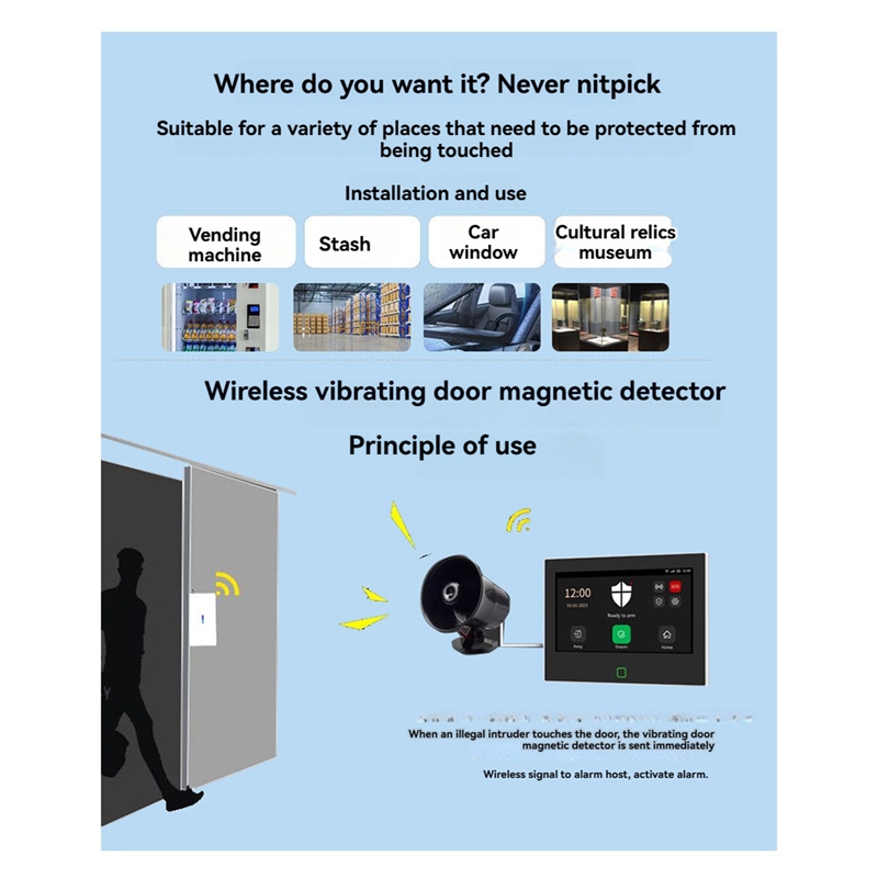 Comprehensive Security: This of wireless vibration sensors is designed to detect break-ins through glass doors and windows, ensuring robust home security.
