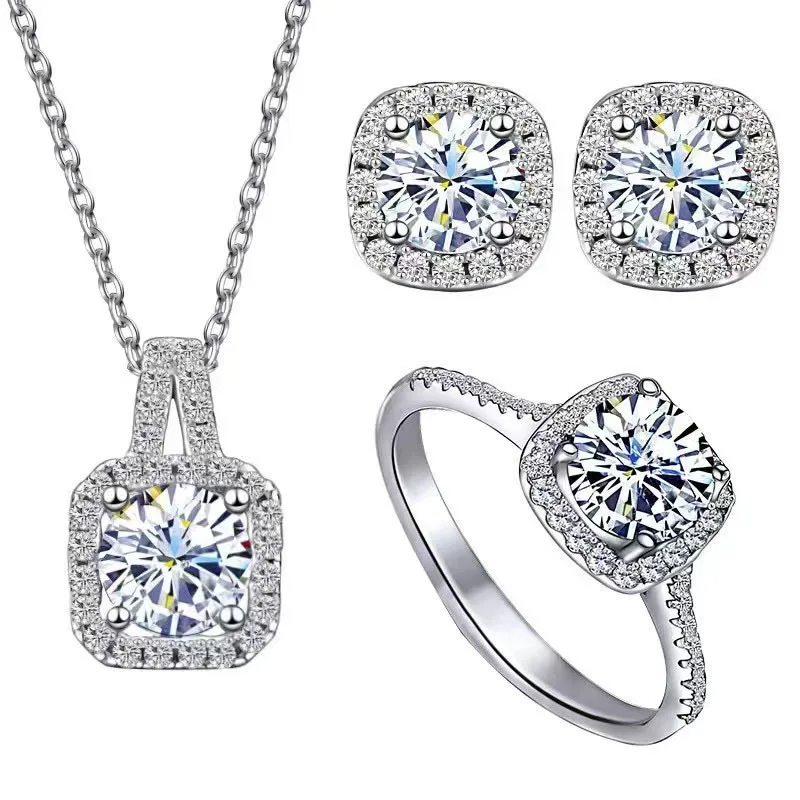 3pcs Set Luxury Brand Shiny Geometric Square Zircon Necklace Earring Rings for Women Charm Fashion Jewelry Set Anniversary Gift