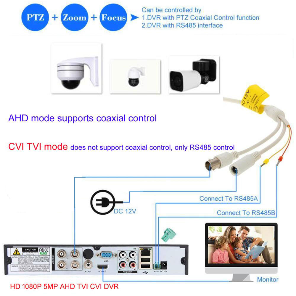 NOTICE: Default Video Signal is 1080P AHD Signal, Compatible with all 1080P or above Analog DVRs; but you can direct shortcut command through RS485 control to switch the video output signal that you need; Command twice preset #137 Switch to AHD Signal Command twice preset #138 Switch to TVI Signal Command twice preset #139 Switch to CVI Signal Command twice preset #140 Switch to CVBS Signal Command twice preset #115 Switch to NTSC System Command twice preset #116 Switch to PAL System