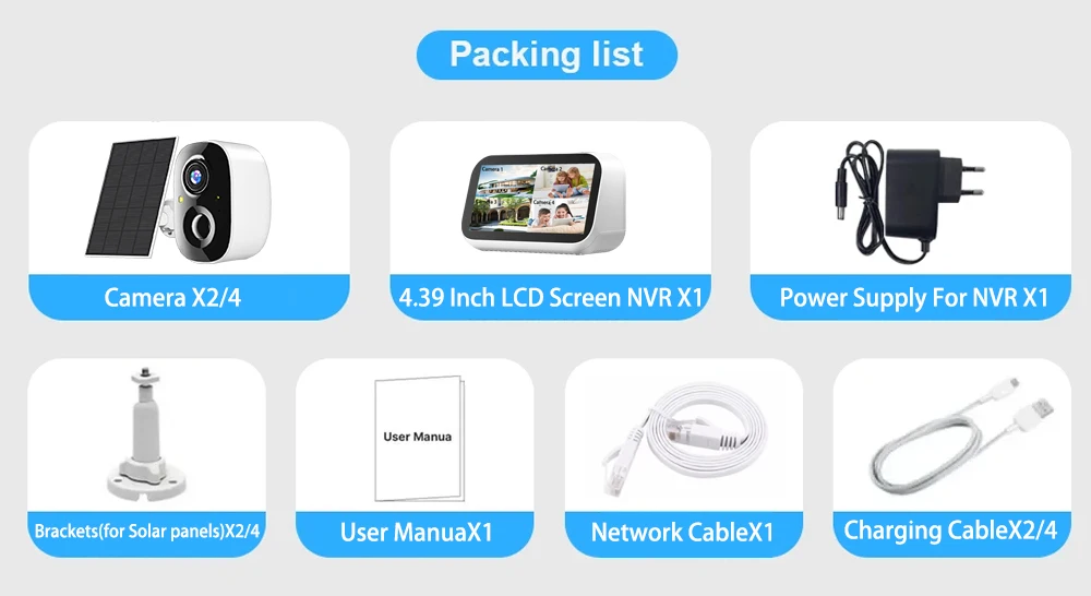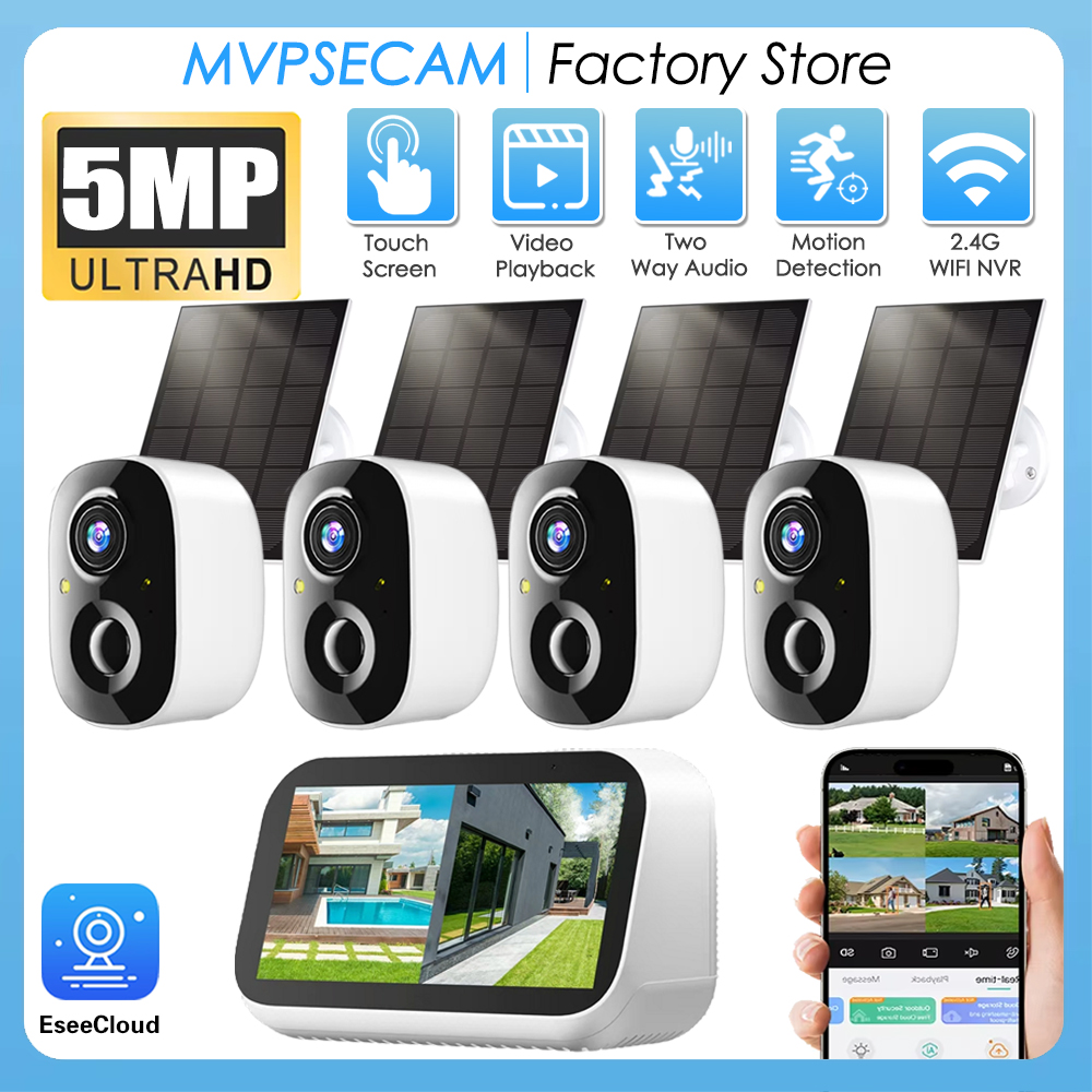 4.39 Inch Mini Baby Monitor Surveillance 4CH 5MP CCTV Touch LCD Screen NVR Home Security Wireless Solar Battery Camera System