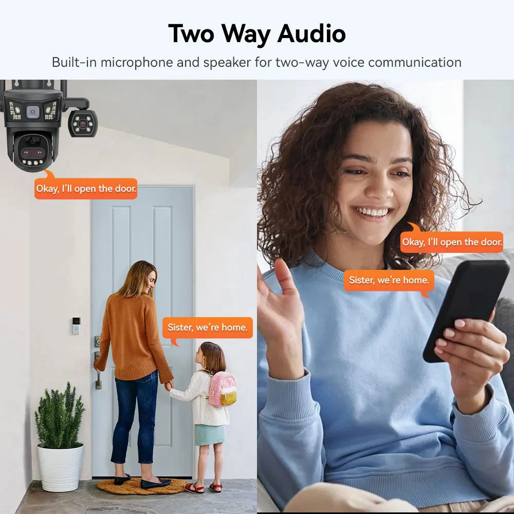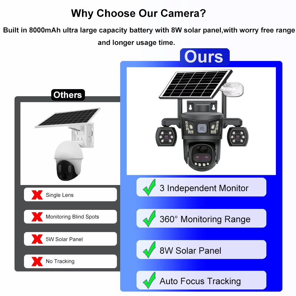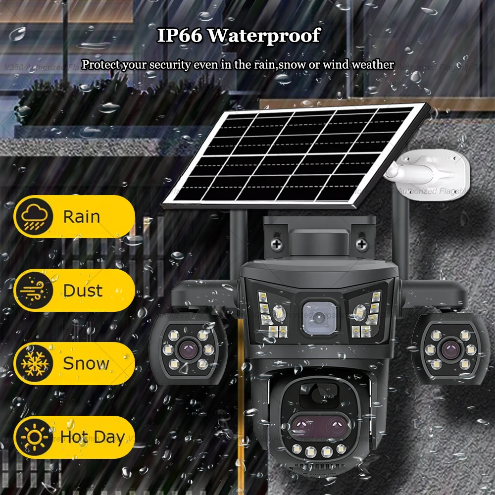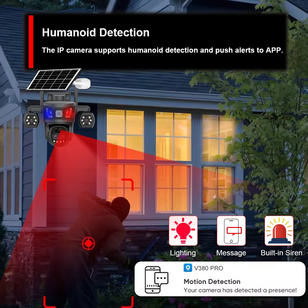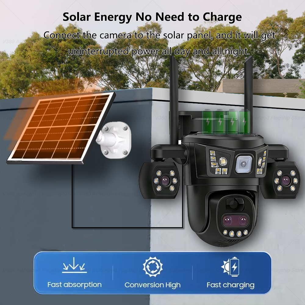 4 Lens 4G Solar Cameras Smart Home Security Protection CCTV Camera PIR Human Detection Alert 10X Zoom IP Surveillance Monitoring