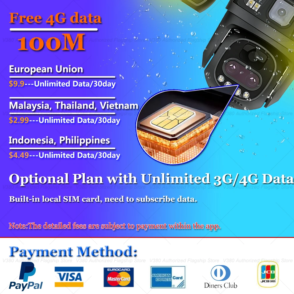 A10:The gifted 4G card comes with free 100MB data and is valid for 7 days after activation. After using up the data, you can directly recharge in the app if you still use our SIM card.Other cards do not support in app recharge and require recharging from the local operator.