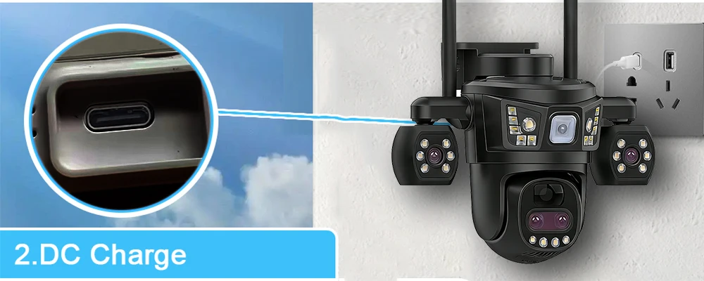 You can remotely control the camera to view every corner via your mobile phone.Left and right camera support manual adjusment .Below main lens support remote control pan:355°/tilt:90°.