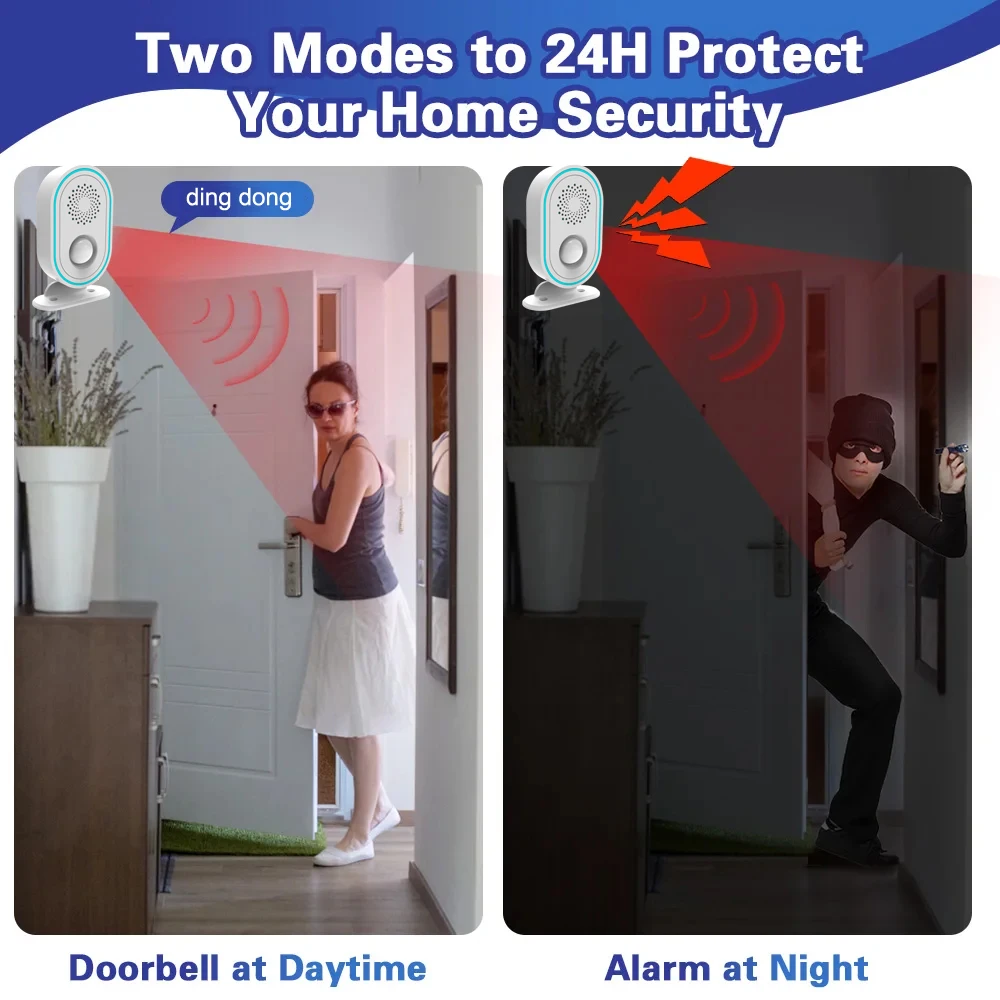 433MHz Wireless Motion Sensor Smart Home Security Burglar Alarm System Welcome Doorbell Adjustable Volume Remote Controll